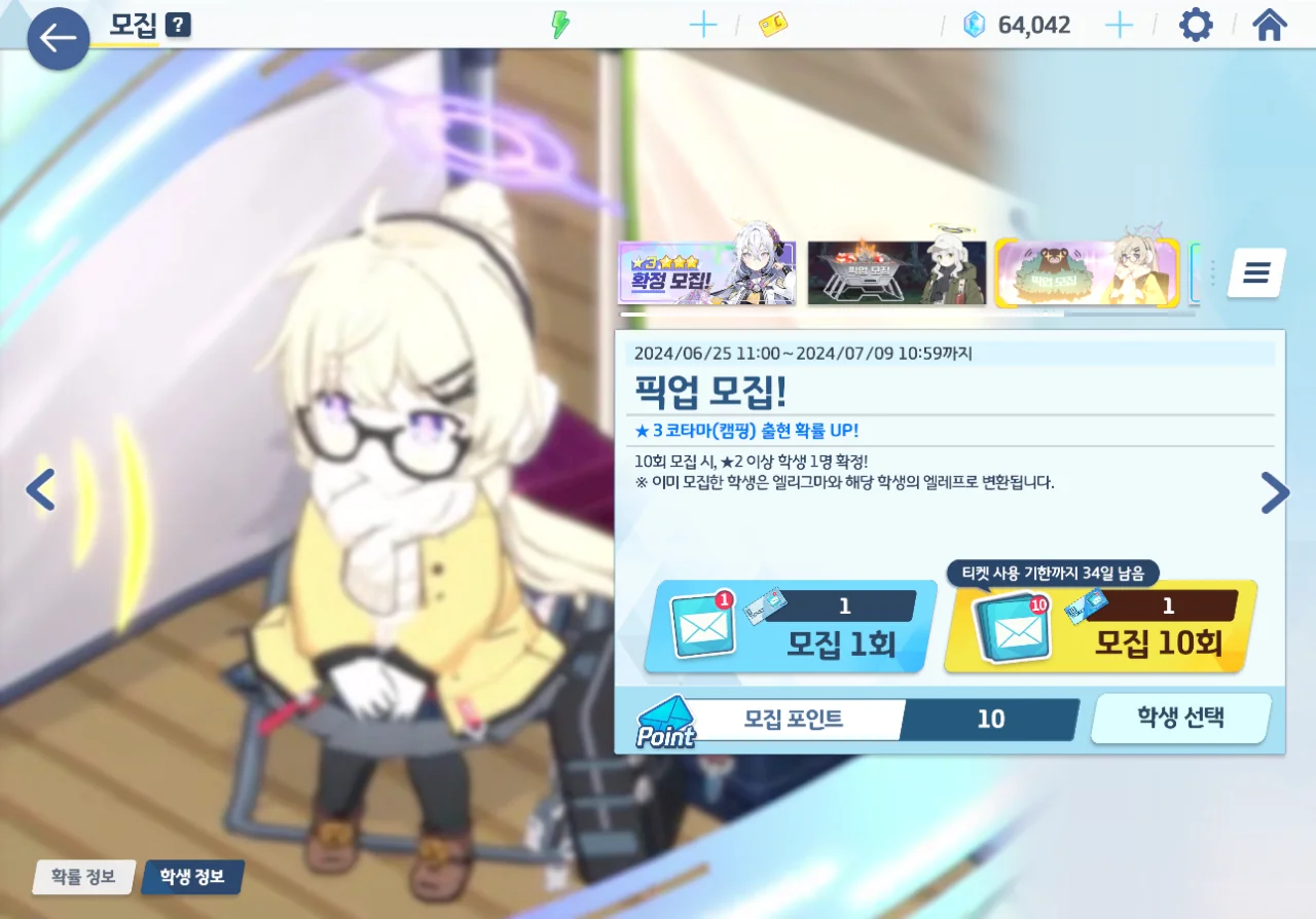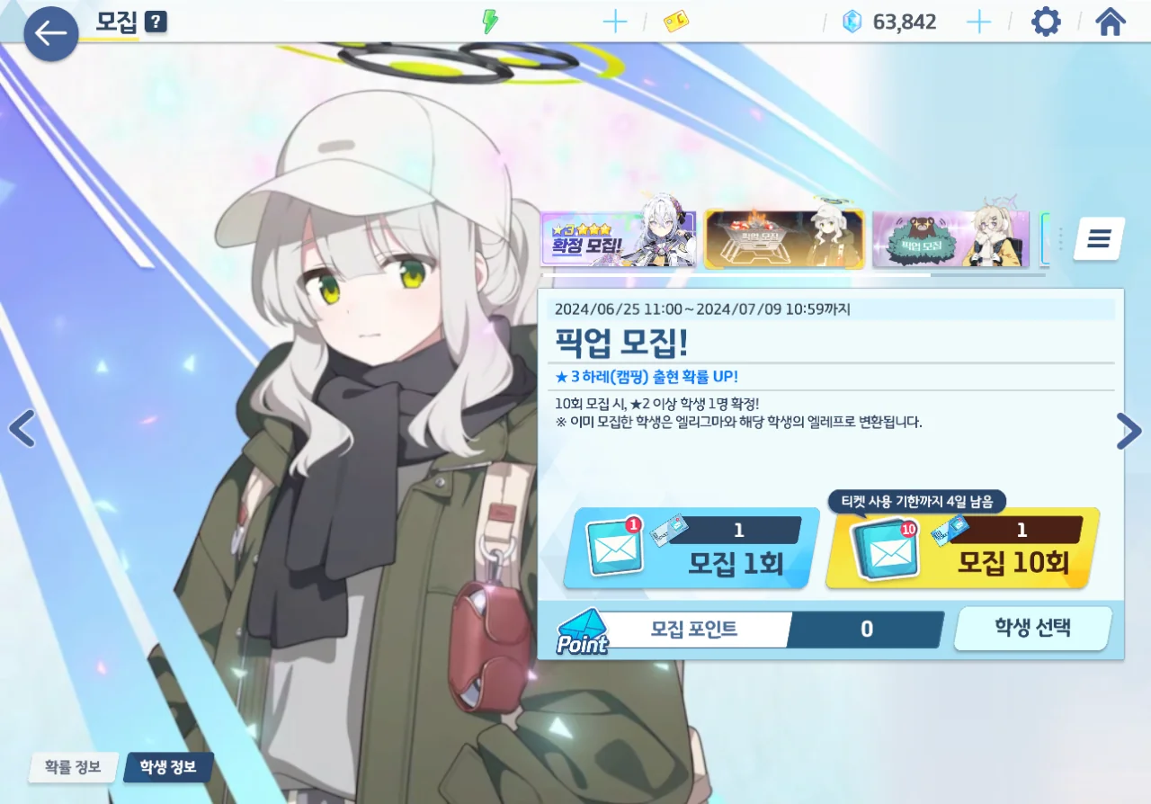 그렇다면 캠타마 역시 도전해 보는 게 좋지 않을까? 마침 대결전 보상으로 10 연차 티켓이 하나 더 들어왔는데 말이다.