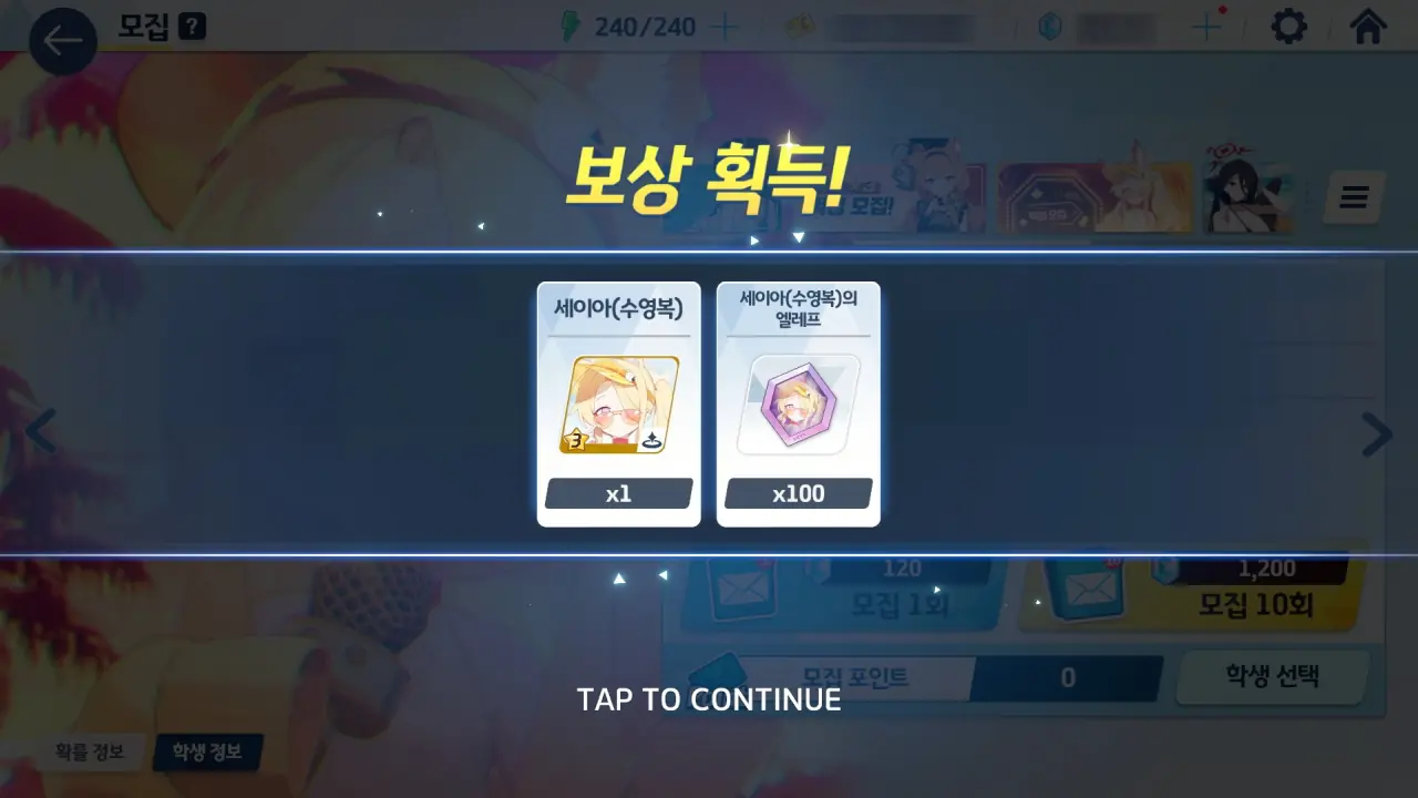 대결전에서 받은 무료 10연 티켓과 어디서 받은 건지 기억나지 않는 또 다른 10연 티켓을 생각하면 120 연차 안에 수영복 세이아가 나와야 이득인 셈이다.