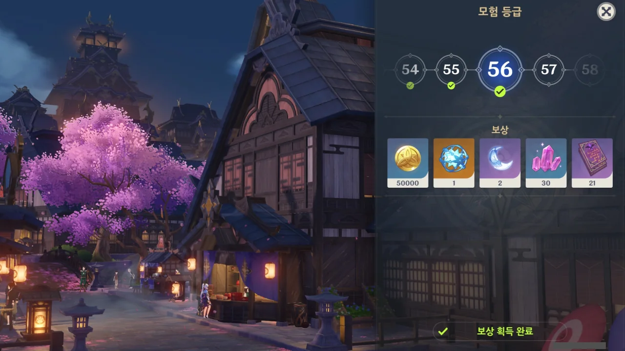 모험 등급 55레벨에서 너무 오랫동안 있어서 그런가, 56레벨이 영원히 오지 않을 것만 같아 보였는데… 56레벨이 오긴 오는구나.