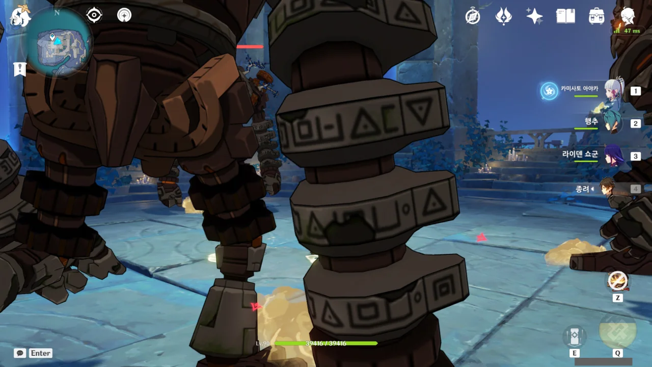 퍼즐을 풀자마자 유적 가디언 세 마리가 '참 잘했어요" 도장을 찍어주기 위해 달려든다.