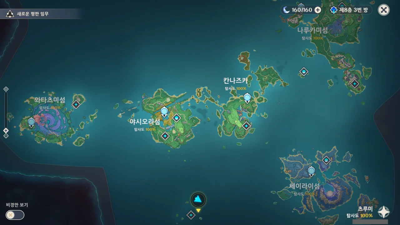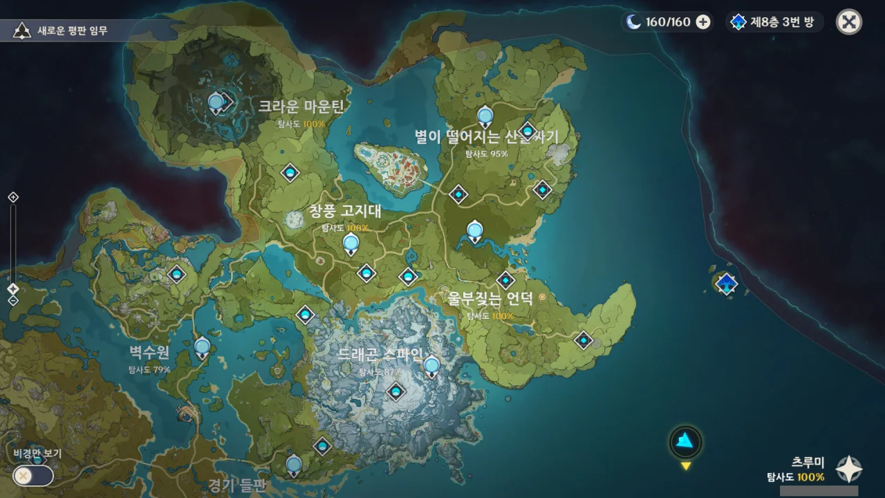 생각해 보니 연하궁은 아직 탐사도가 100%가 아니긴 한데, 연하궁은 별개의 지도를 쓰니까 일단은 제외하자.