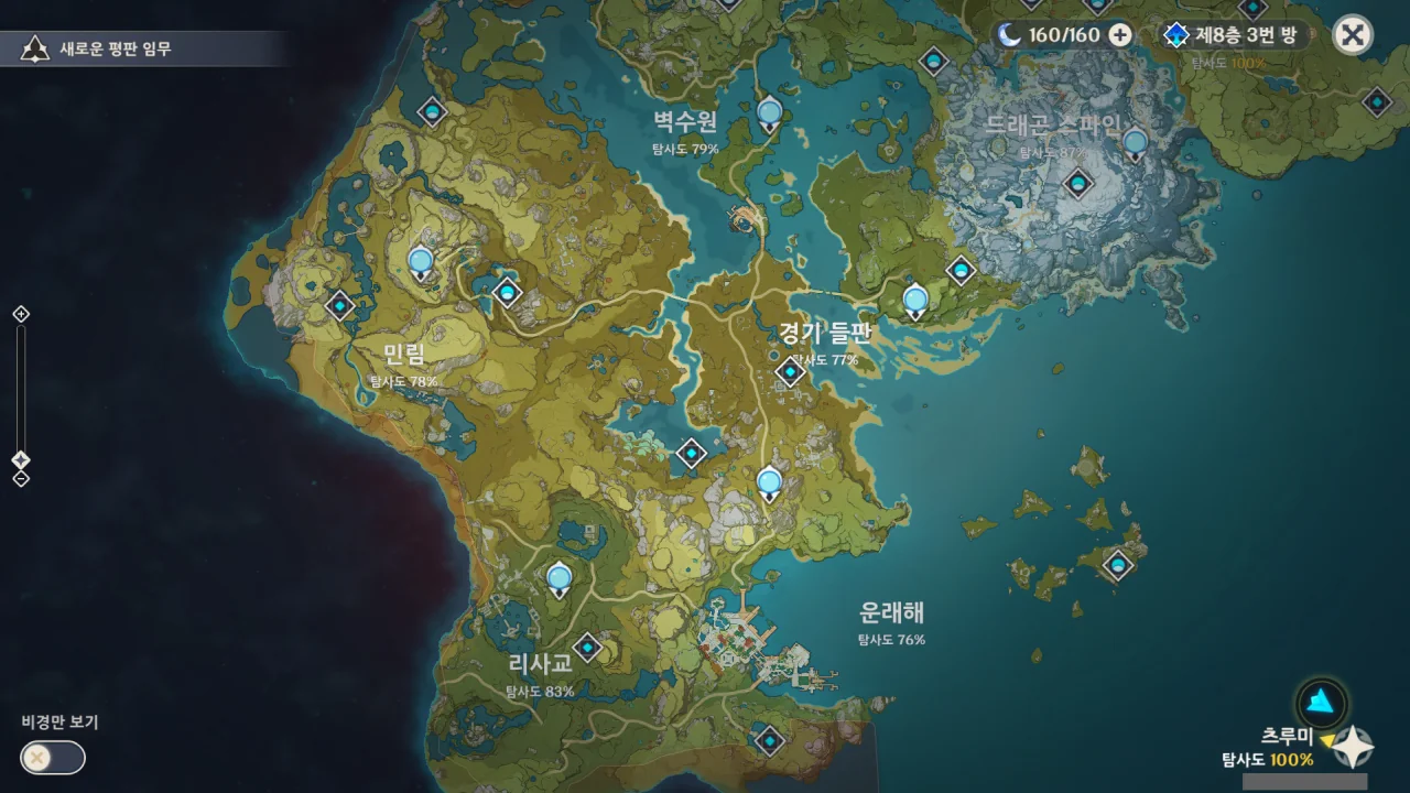 드디어… 이나즈마의 모든 지역 탐사도를 100%로 만들었다.
