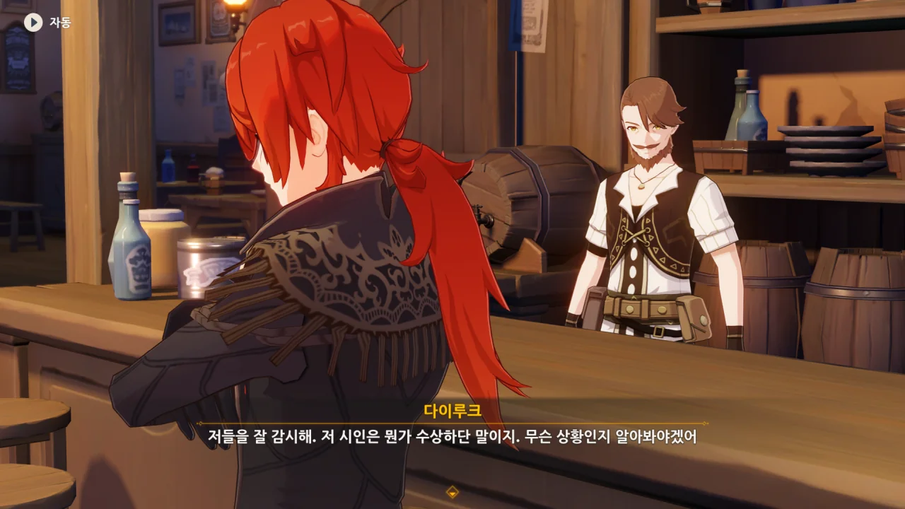 최대한 사람들의 주목을 끌어모아야 할 음유시인이 사람의 눈길이 닿지 않는 곳을 찾자, 대번에 의심하는 다이루크.