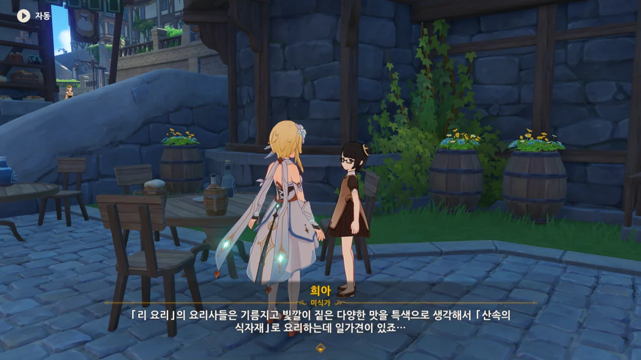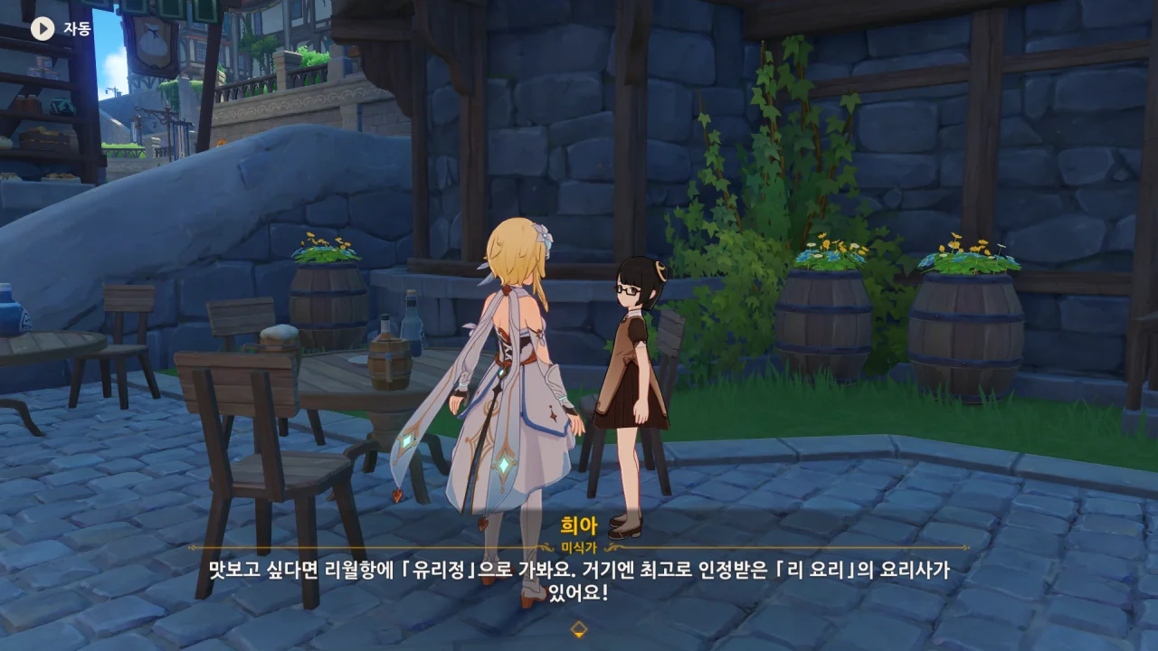 자칭 미식가, 희아에게서 리월의 양대 요리에 대한 정보를 얻을 수 있었다.