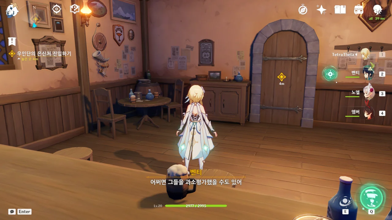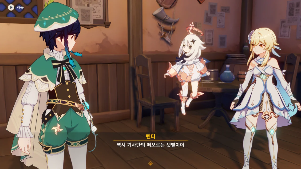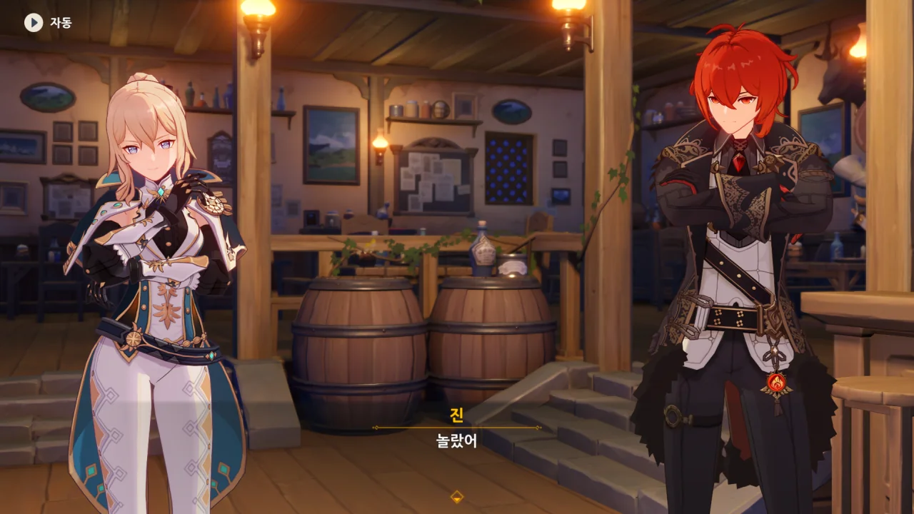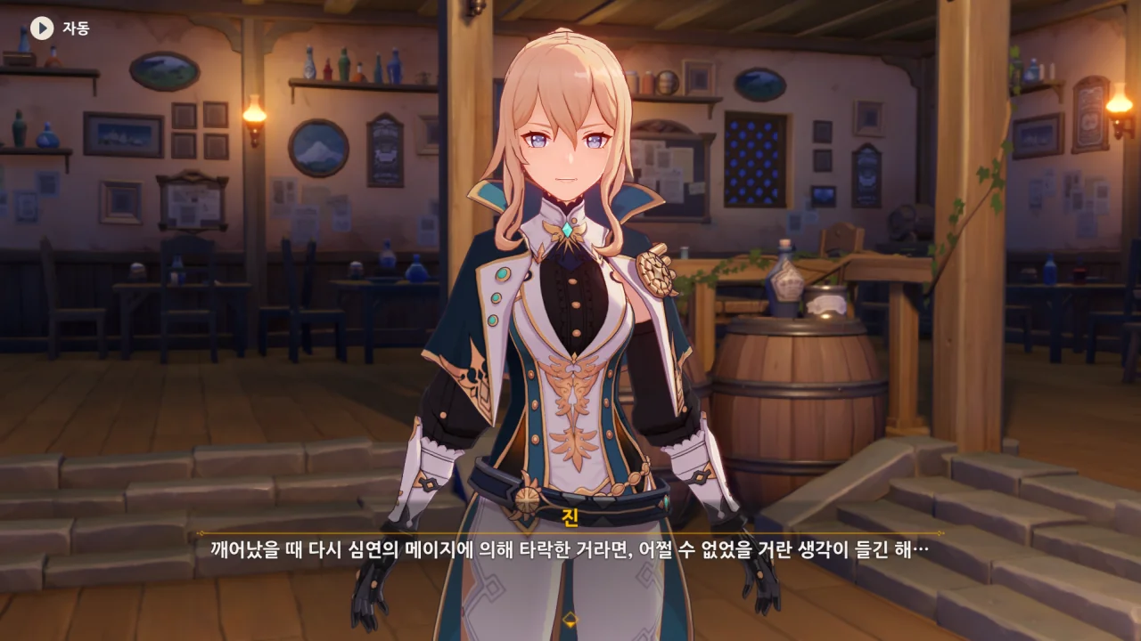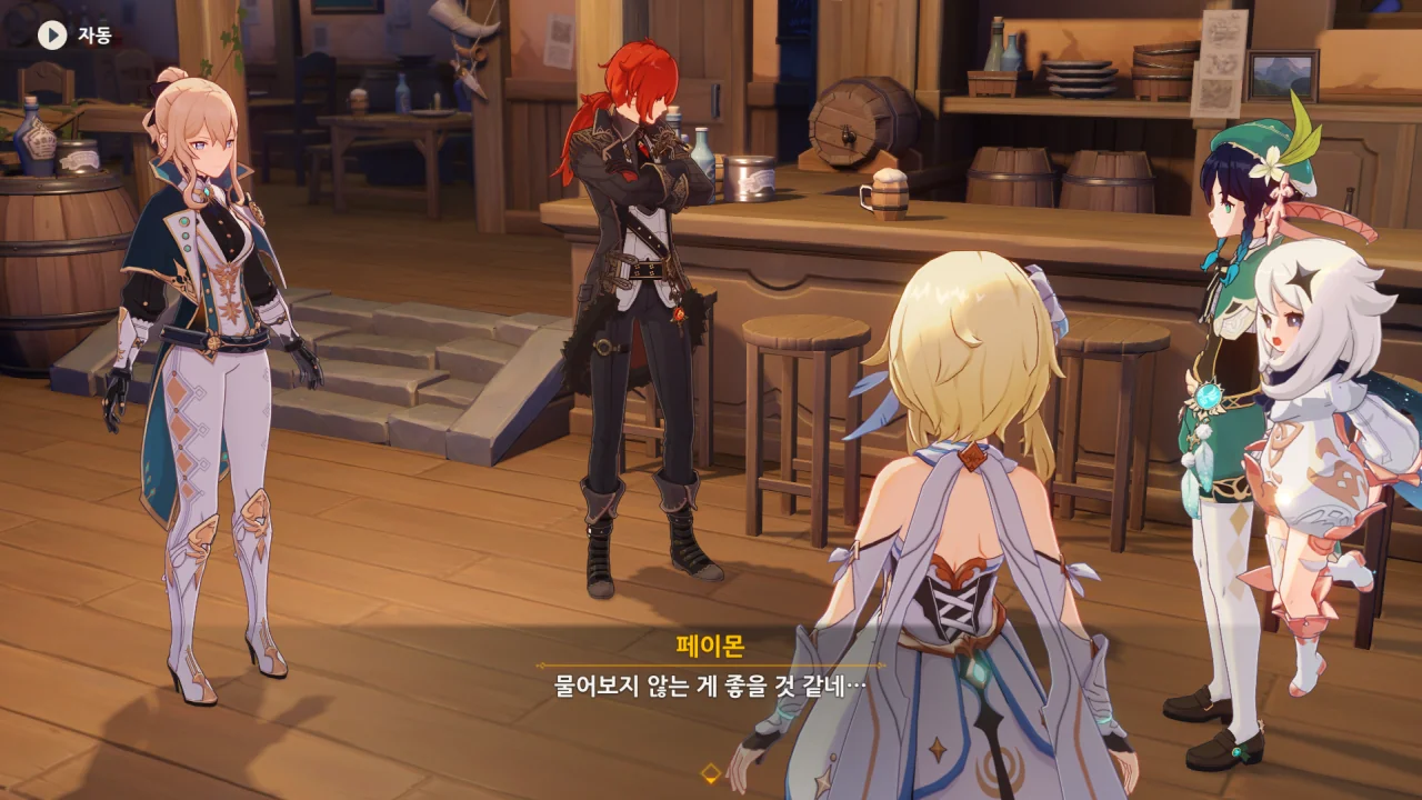 진이 여행자와 벤티의 말을 단번에 믿어버리자, 말하다 말고 "… 응?"이라고 되묻는다.