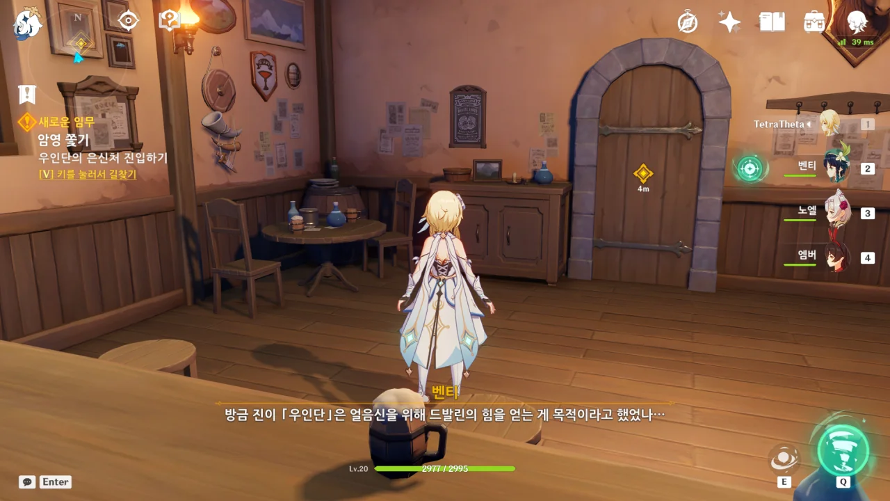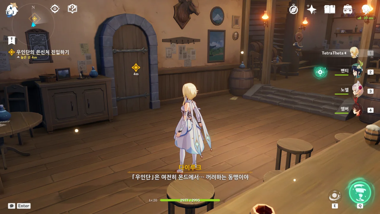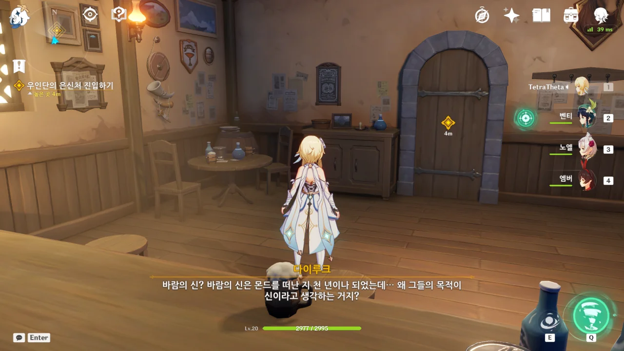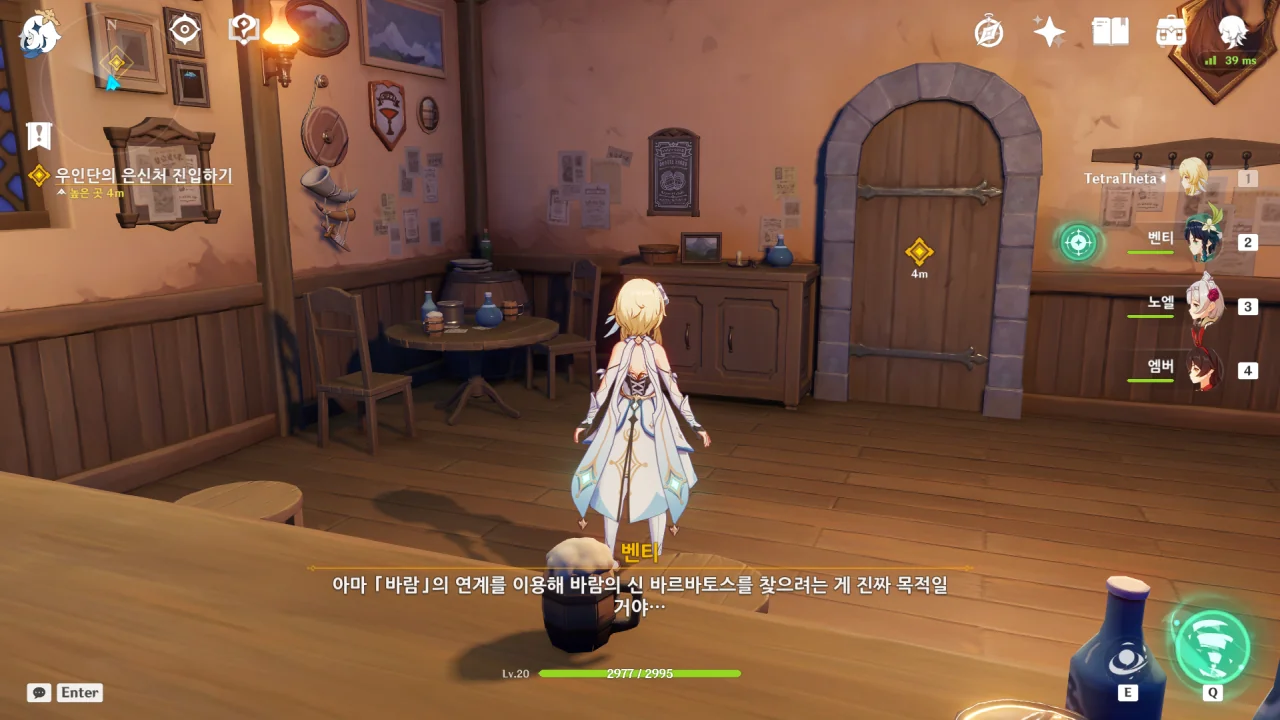 벤티는 우인단이 천공의 하프를 훔쳐 간 것이 「바람」의 연계를 통해 바람의 신의 현재 위치를 알아내려는 목적일 것이라고 말한다.