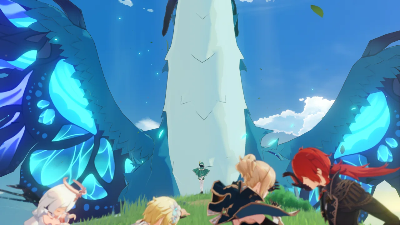 - 드발린과 대치 중인 여행자와 페이몬의 머릿속에 말을 걸고 바람의 힘을 주어 드발린과 맞서 싸울 수 있게 해줌