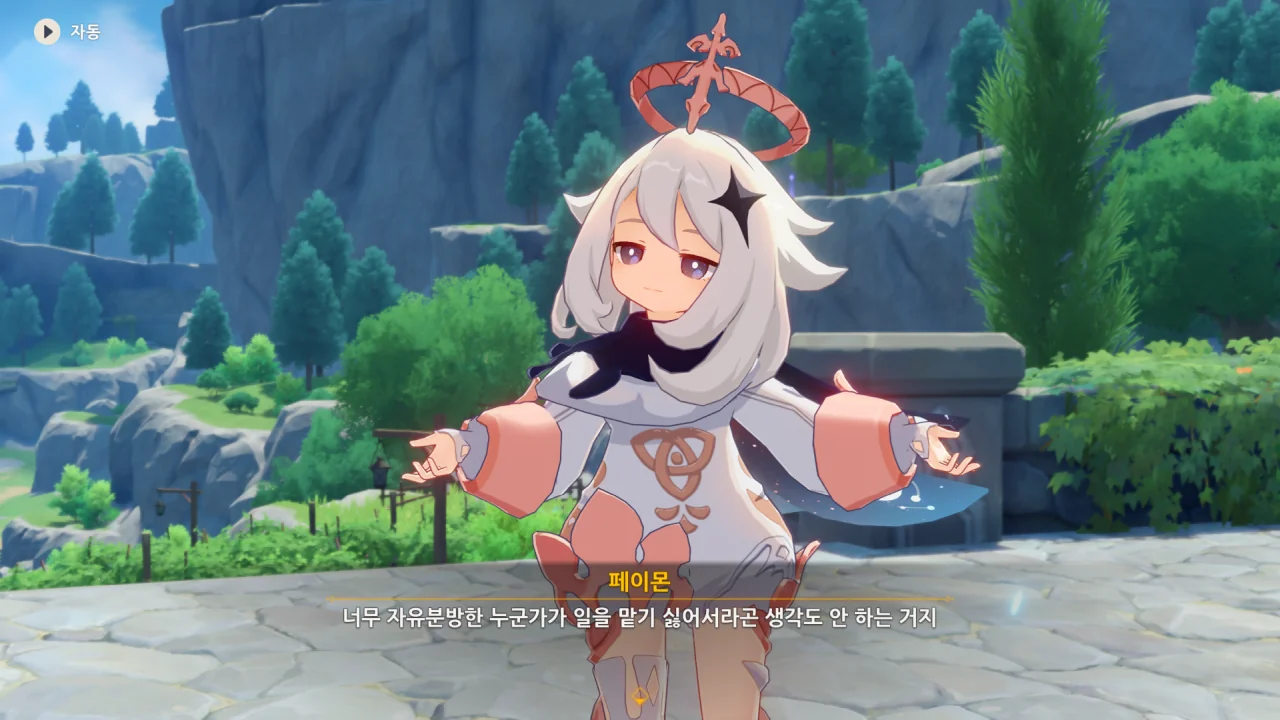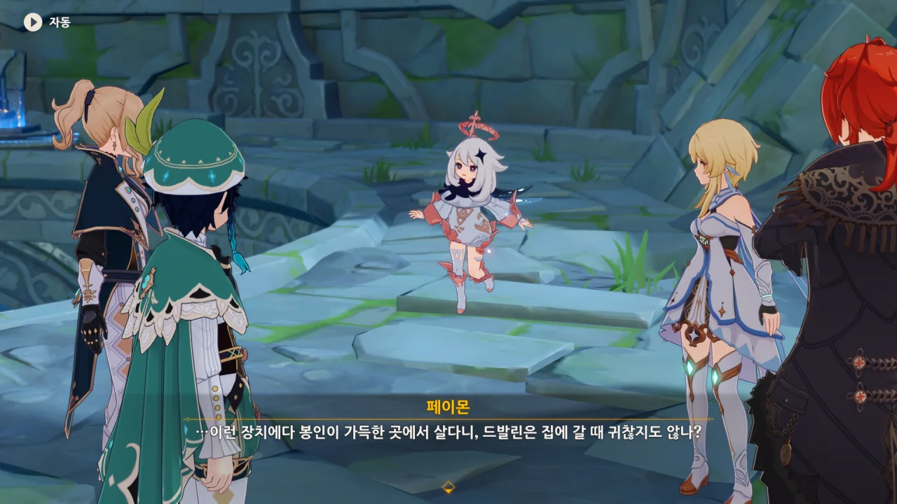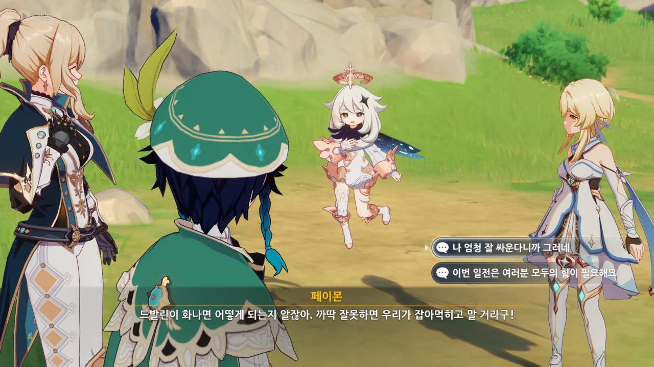 페이몬도 거기에 뭐라 더 대꾸하지 못하고 떨떠름하게 '너도 맞는 말을 하는구나'라고 대답한다.