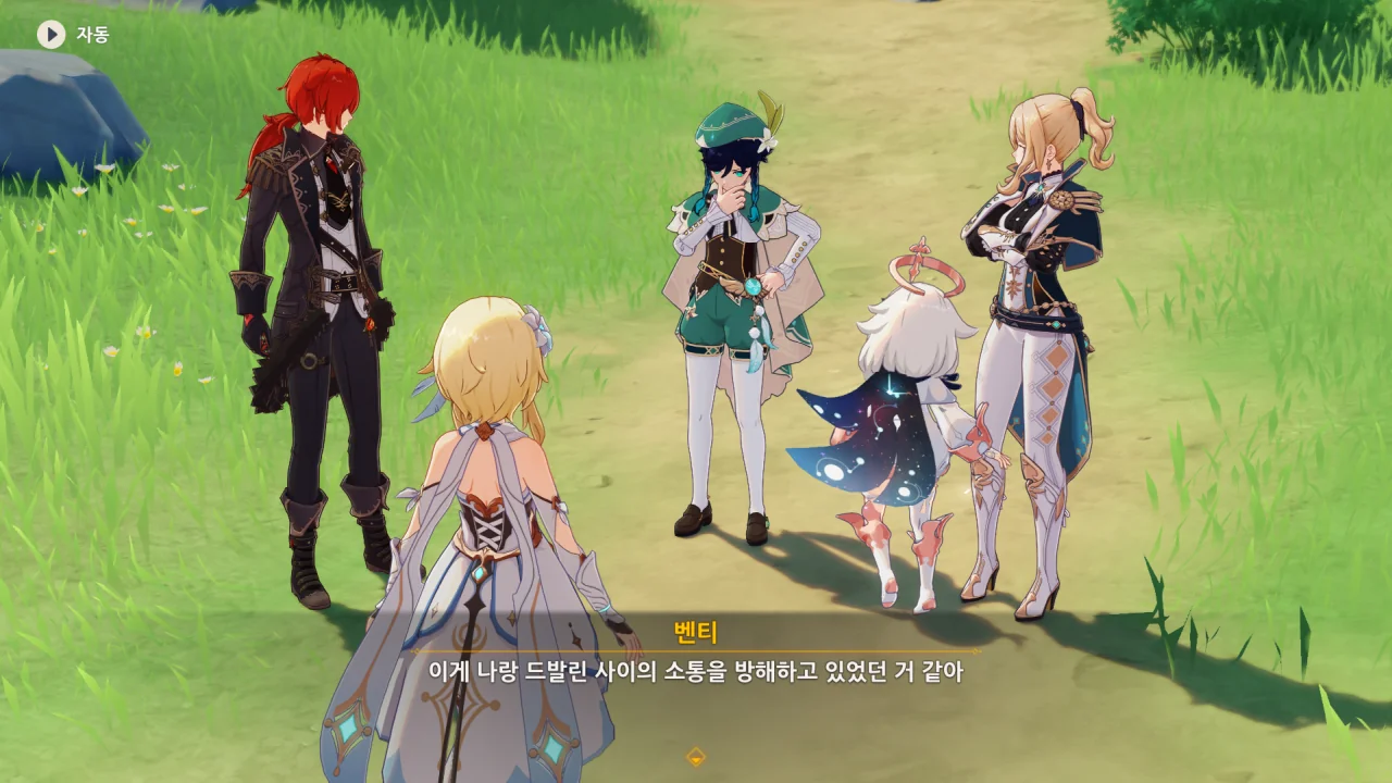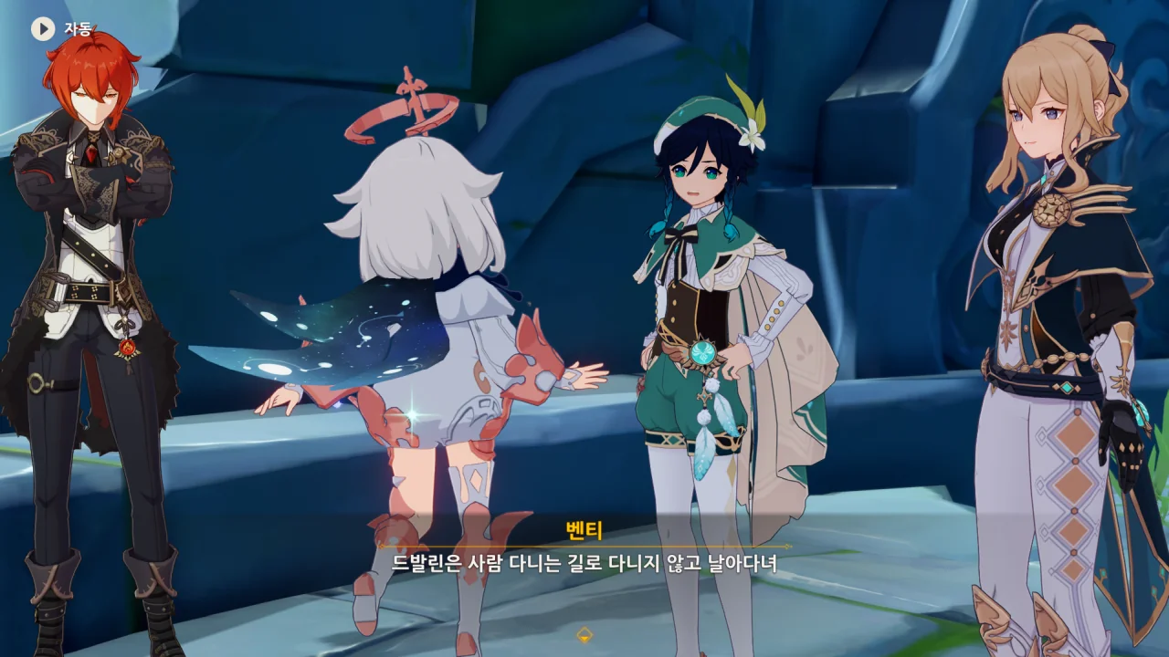 드발린같은 큰 몸집으로 저 문을 어떻게 통과할까 궁금해하는 페이몬에게 드발린은 저 문을 이용하지 않고 날아다닌다며 핀잔을 주는 벤티.