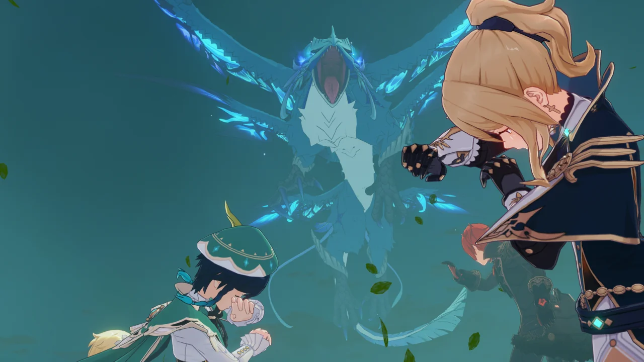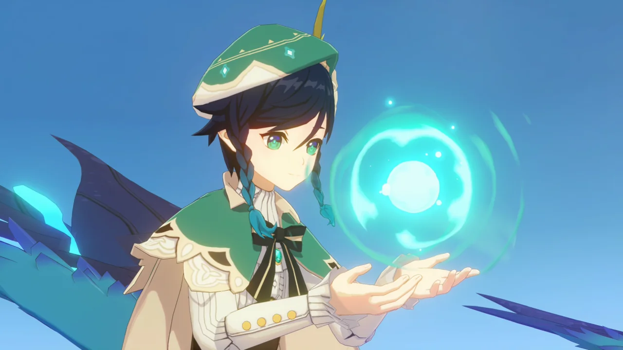 벤티가 손에 바람의 기운을 모아 드발린에게 준다.