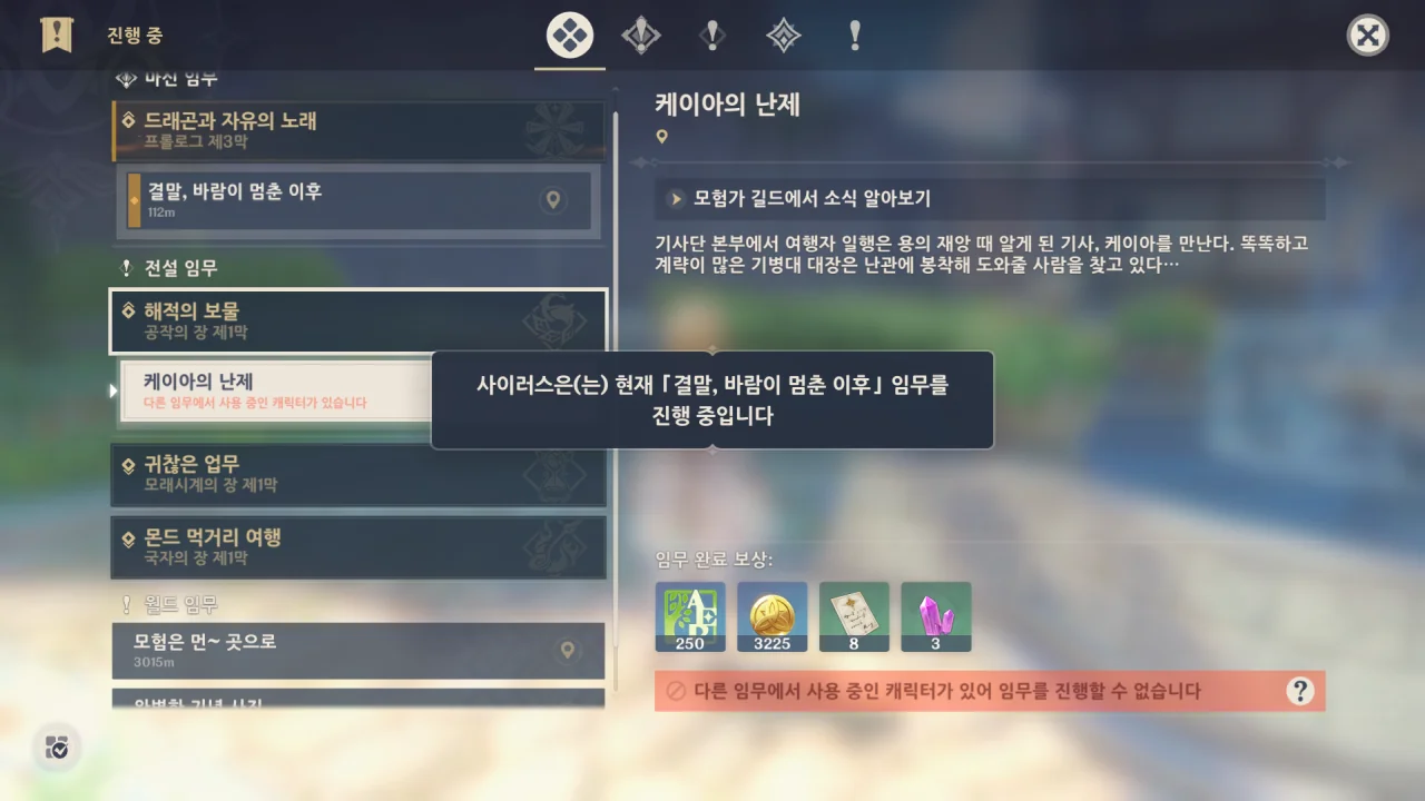 다음 버전에서는 전설 임무를 끄고 켤 수 있게 만든다던데, 그러면 이런 식으로 전설 임무 때문에 마신 임무나 이벤트 임무를 하지 못하게 되는 상황이 사라질 것이다.
