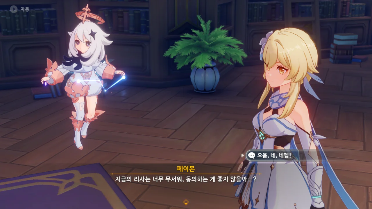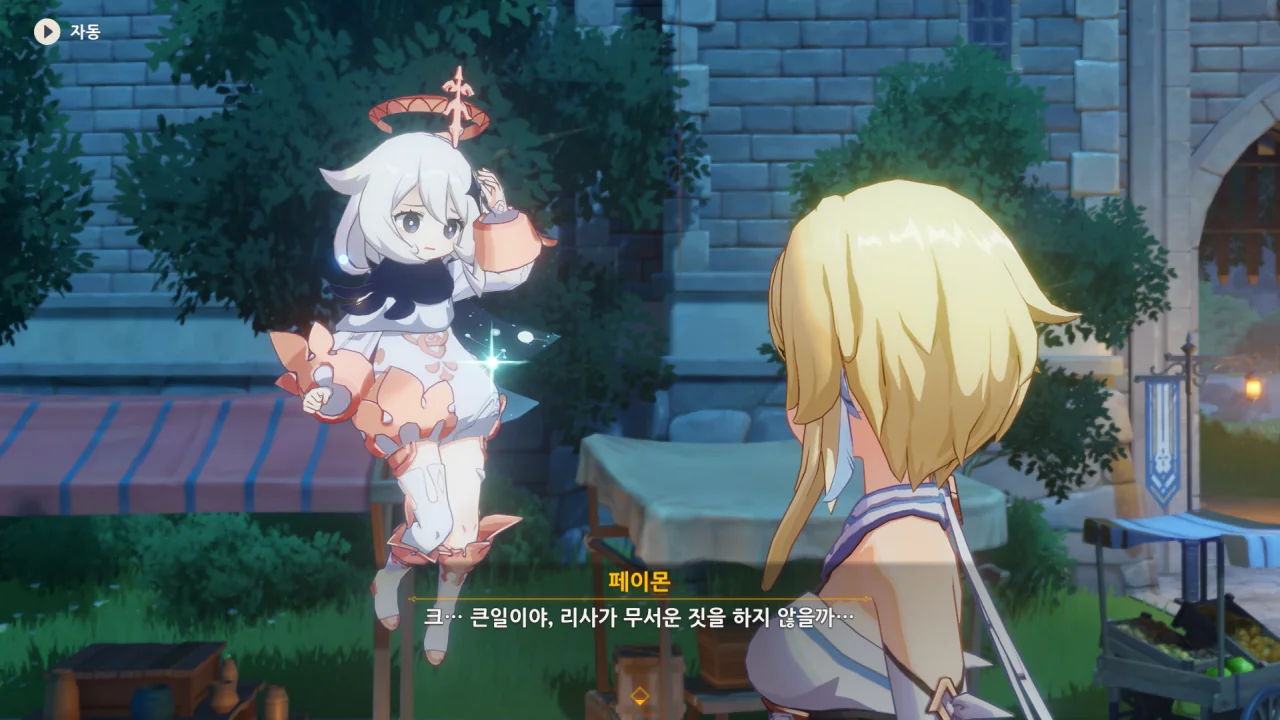 페이몬이 "리사가 무서운 짓을 하지 않을까?"라고 했는데, 그게 리사에게 다 들렸다.