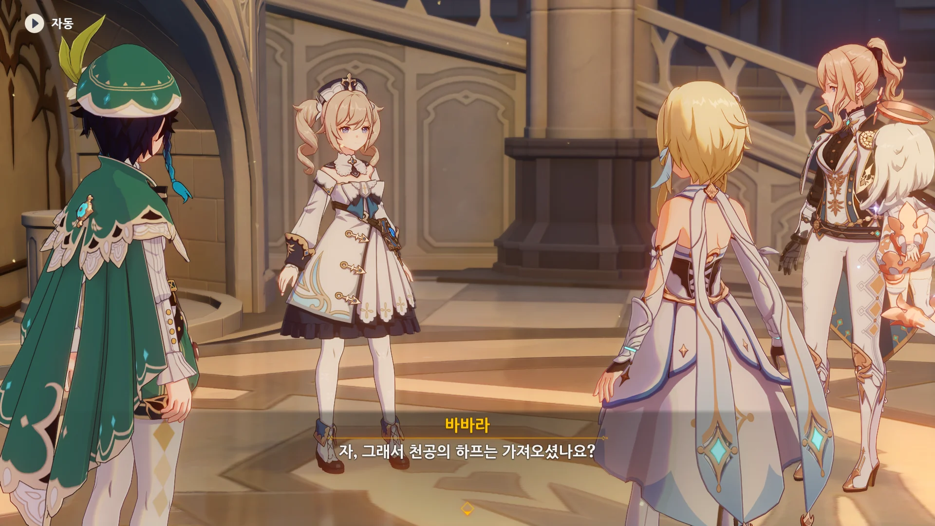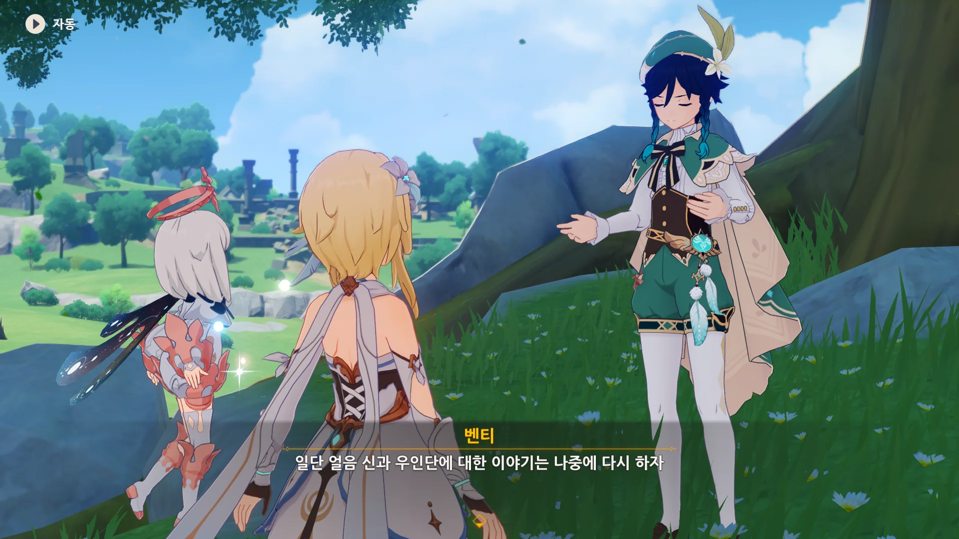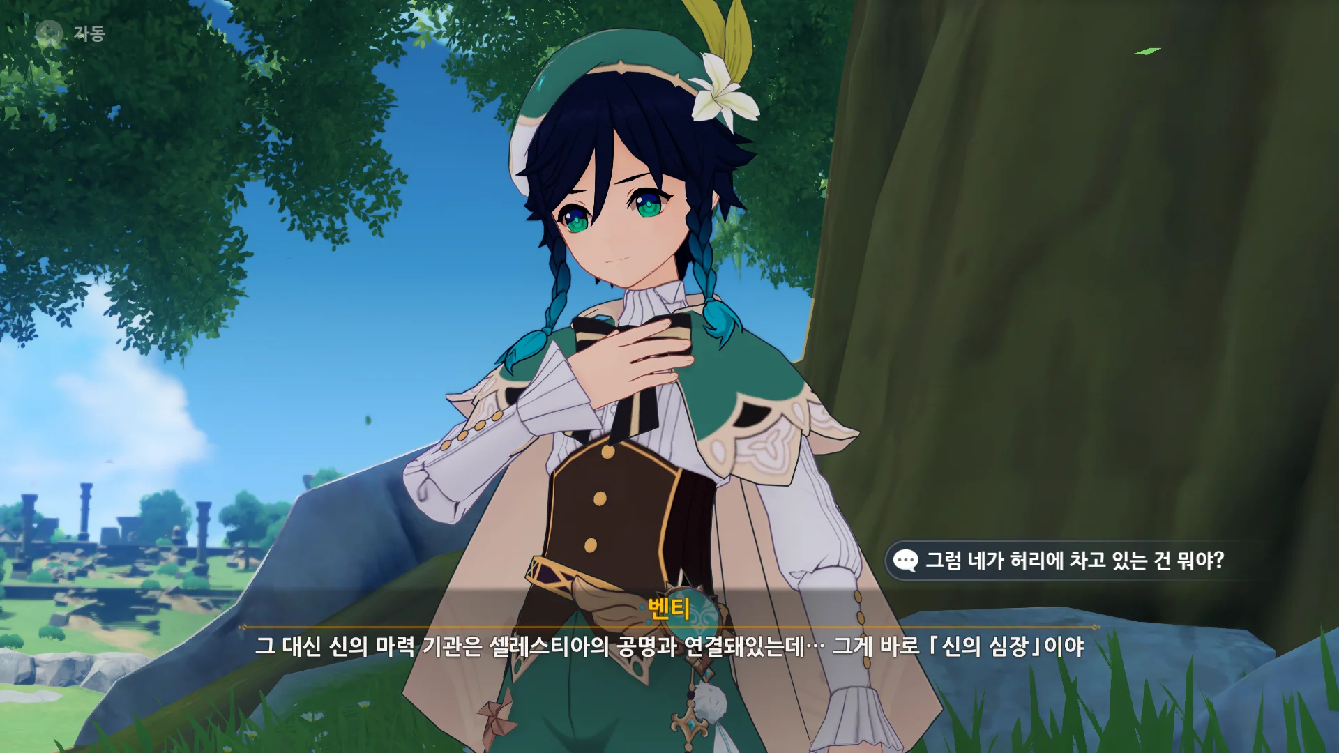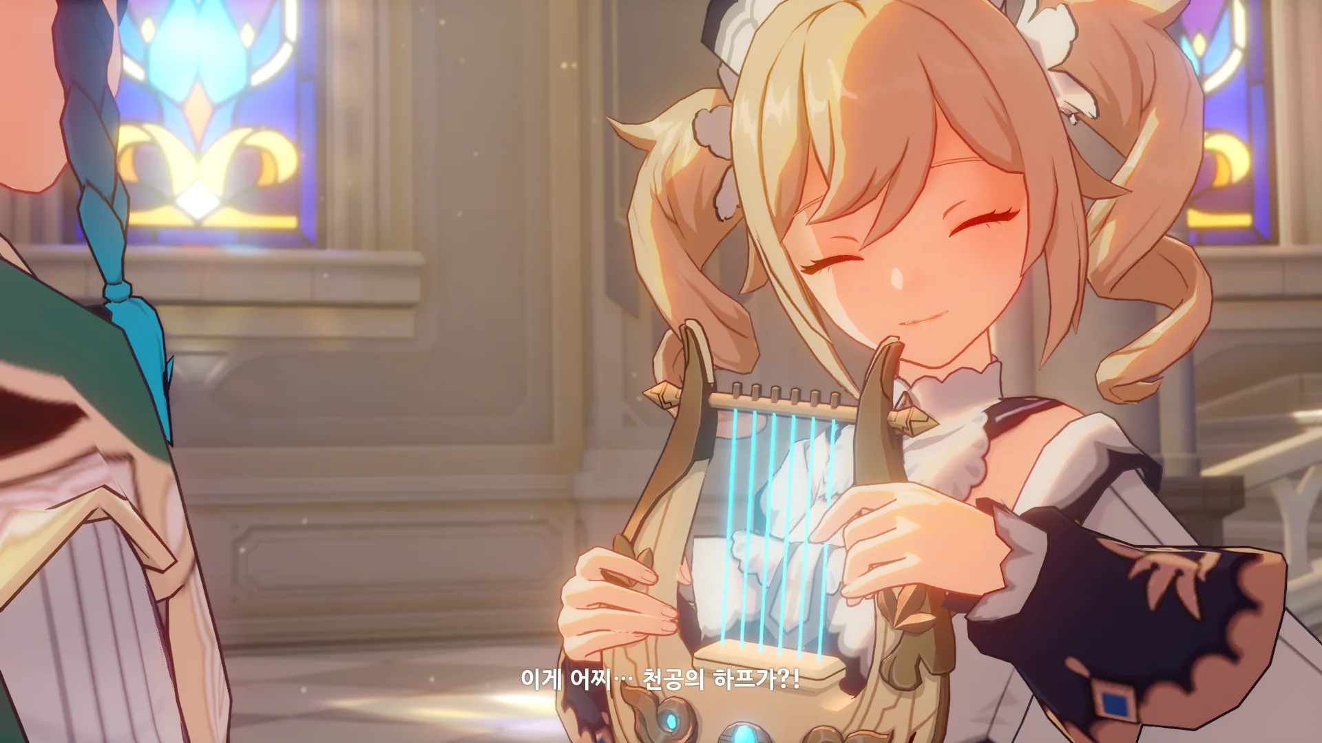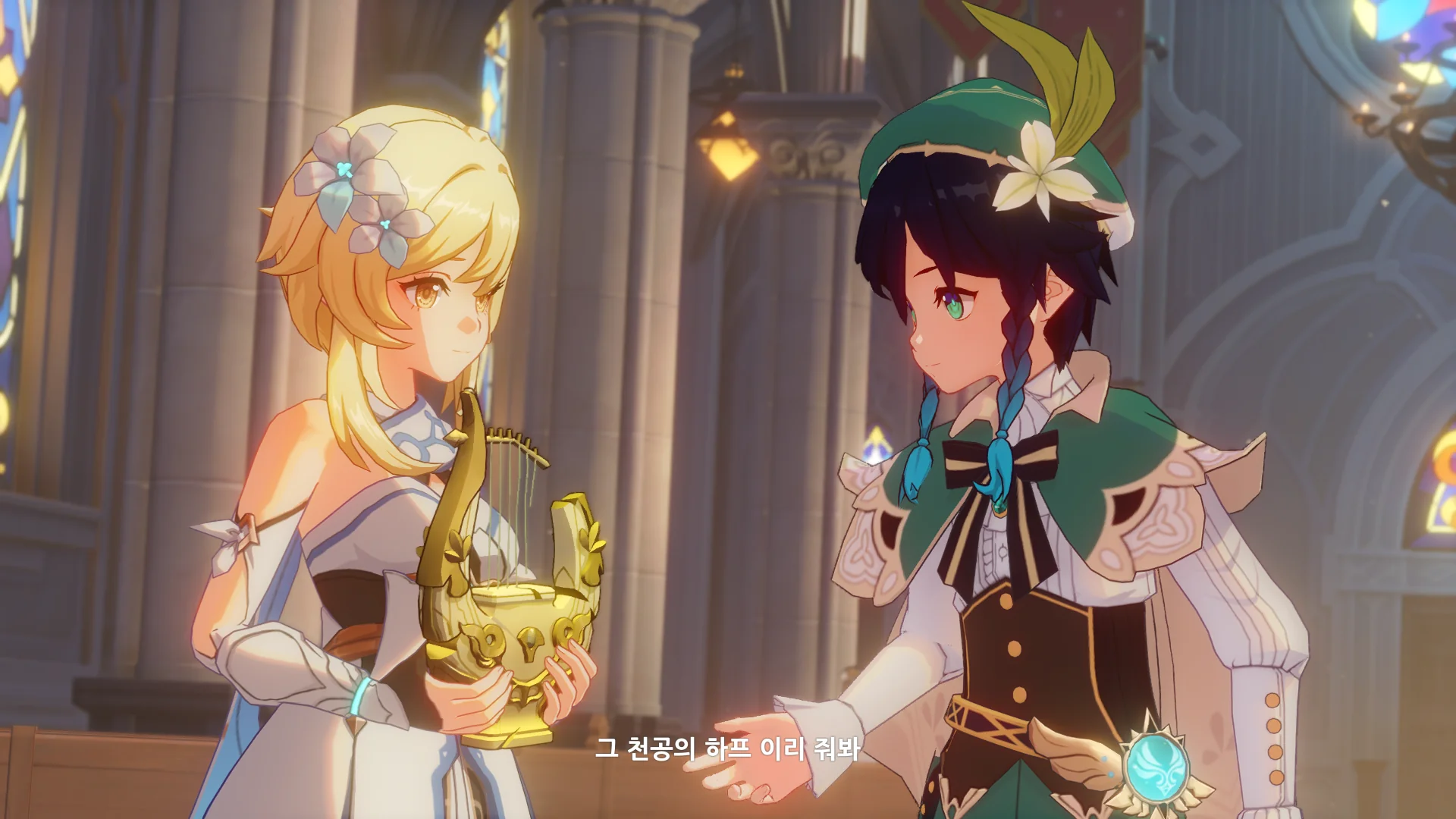 그걸 본 벤티가 한숨을 내쉬더니, 천공의 하프를 받아 들고, 다시 원래대로 돌려놓는다.