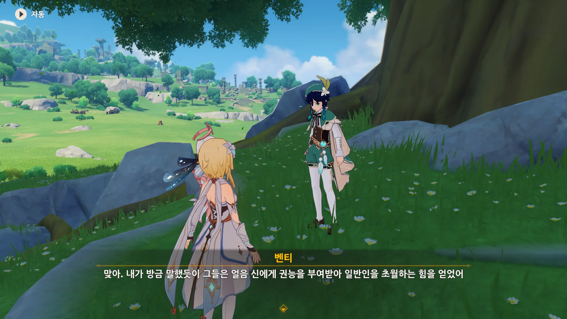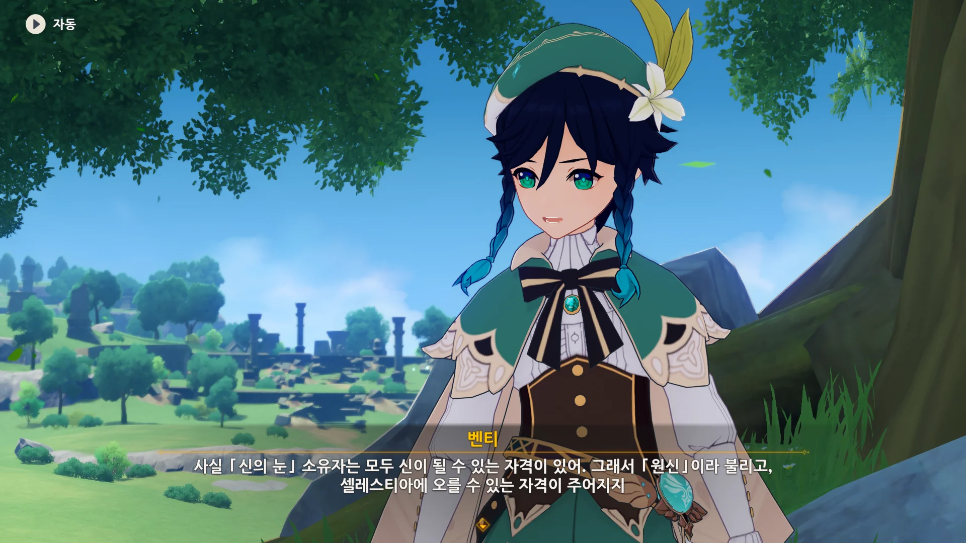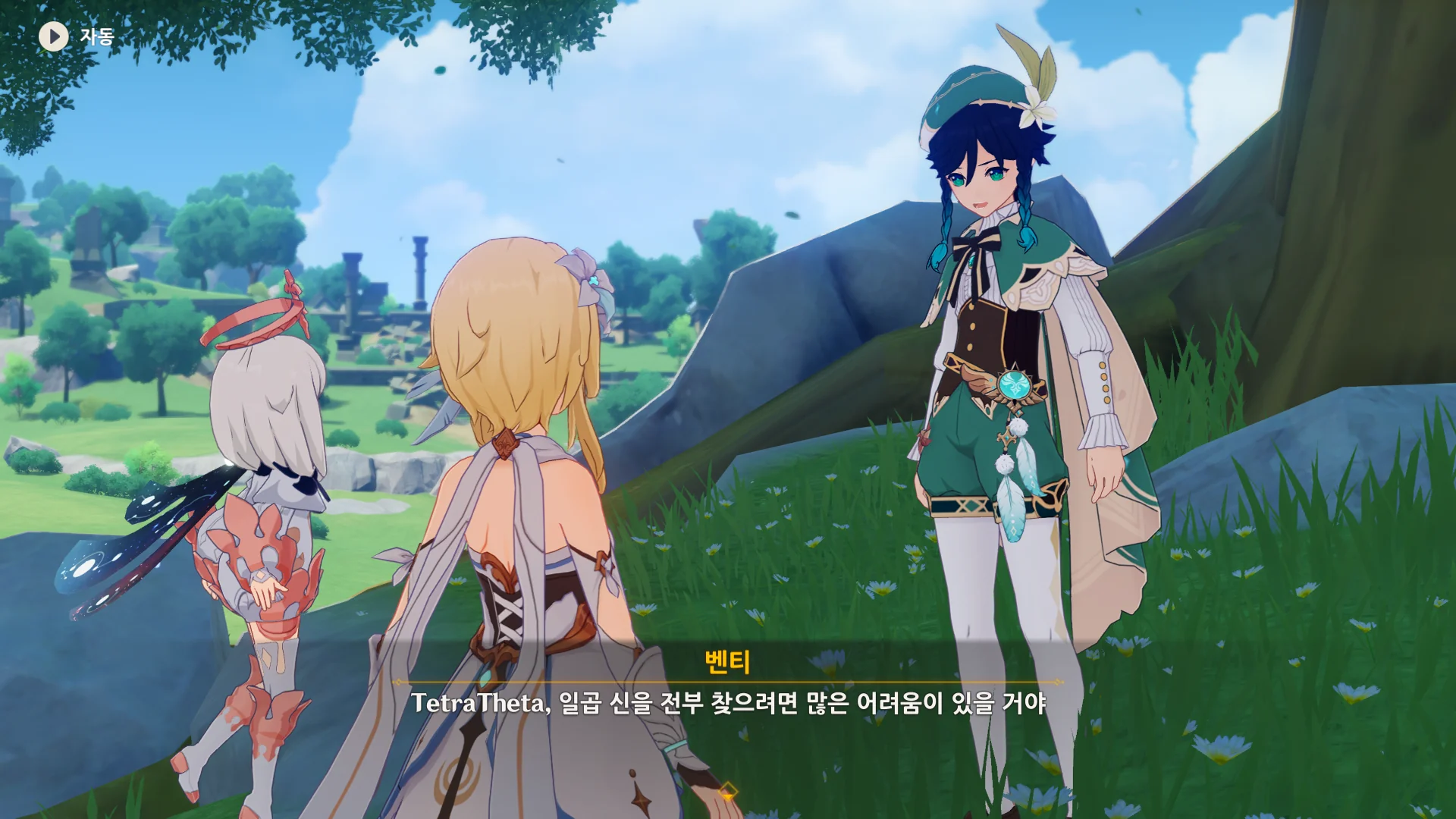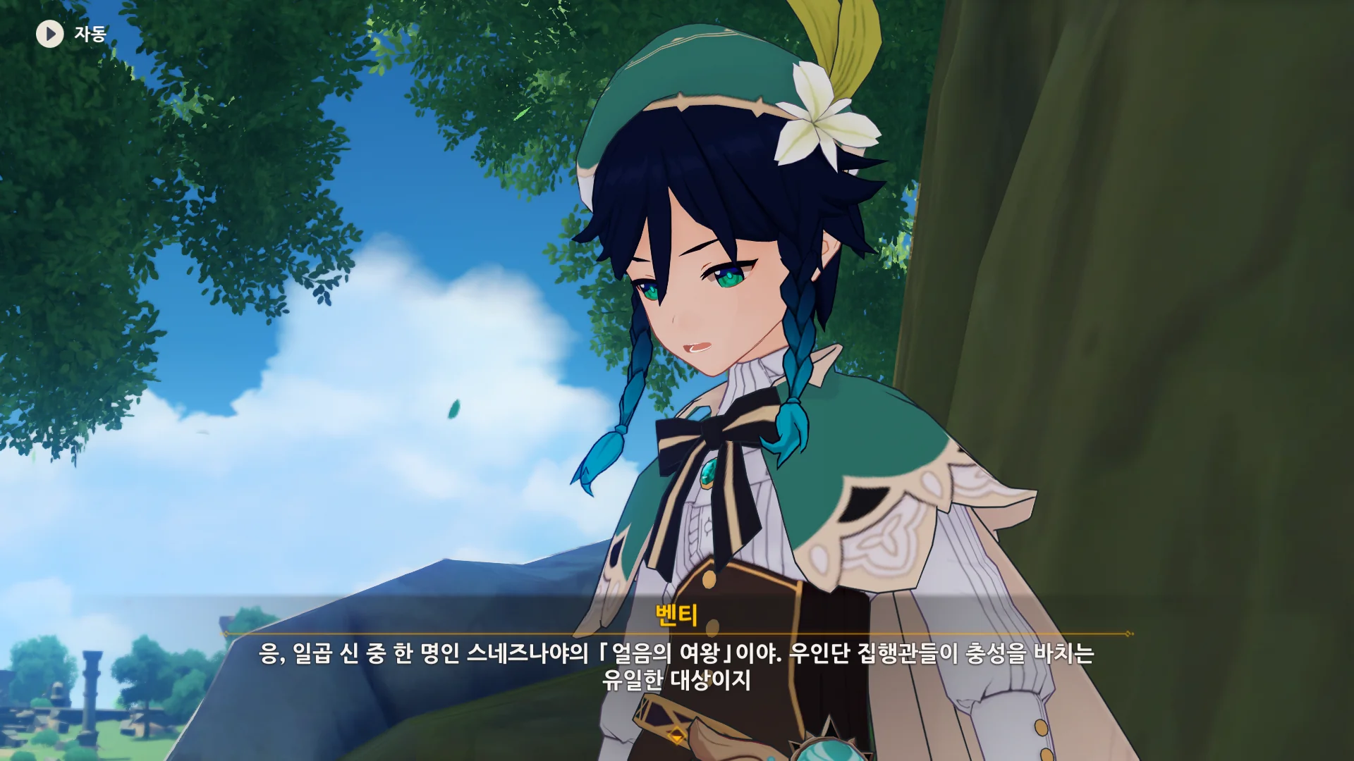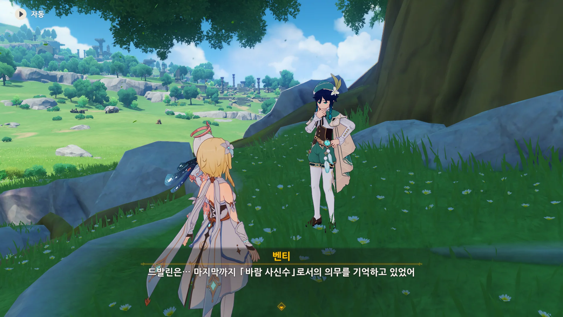 그걸 본 벤티가 한숨을 내쉬더니, 천공의 하프를 받아 들고, 다시 원래대로 돌려놓는다.