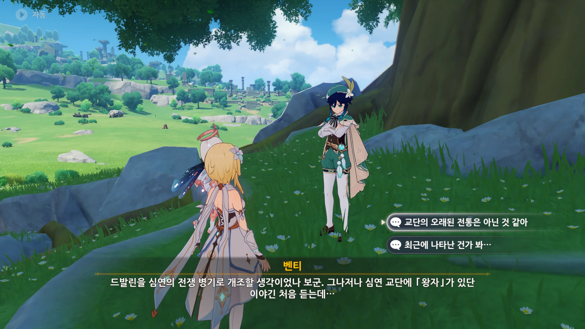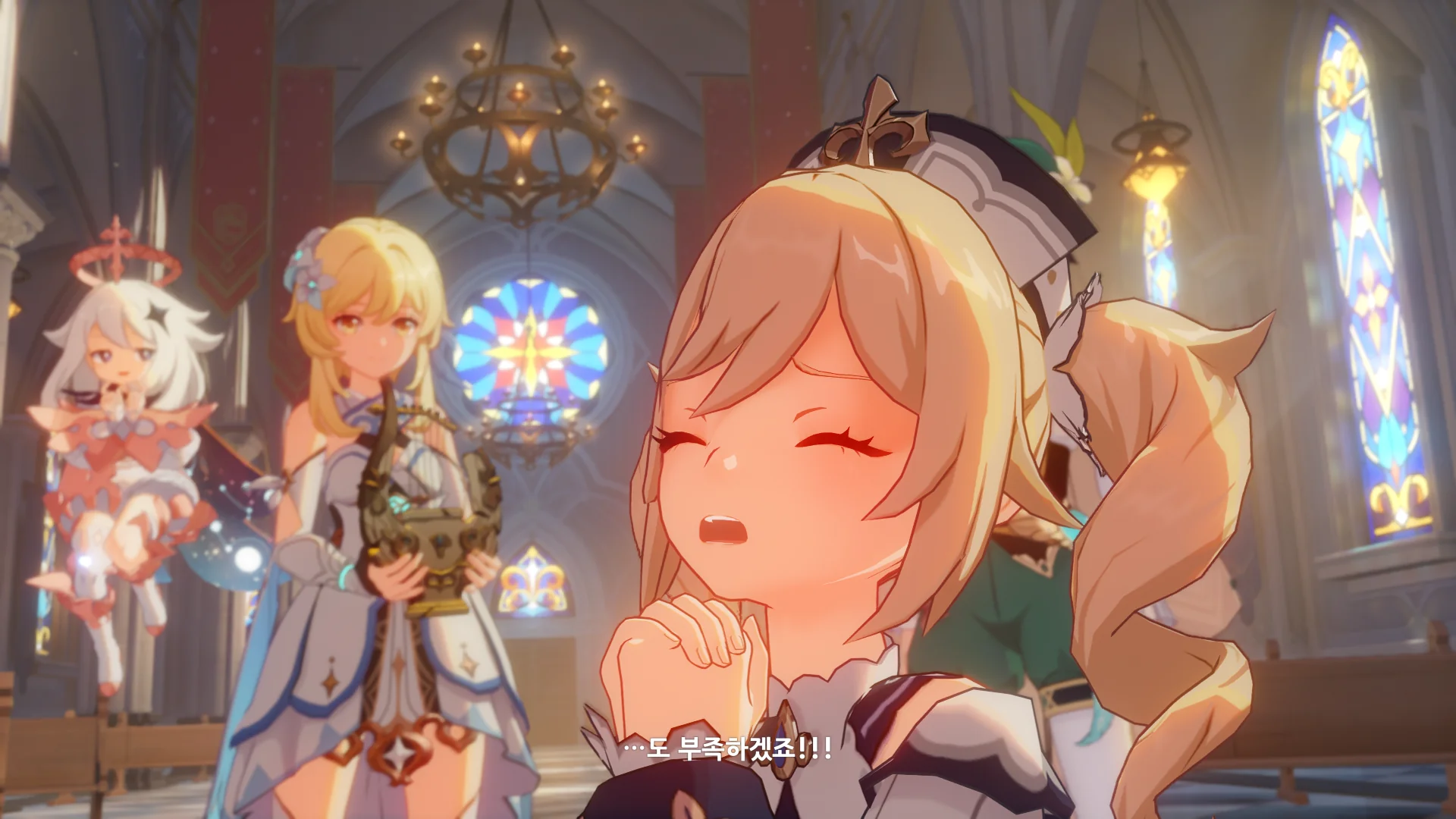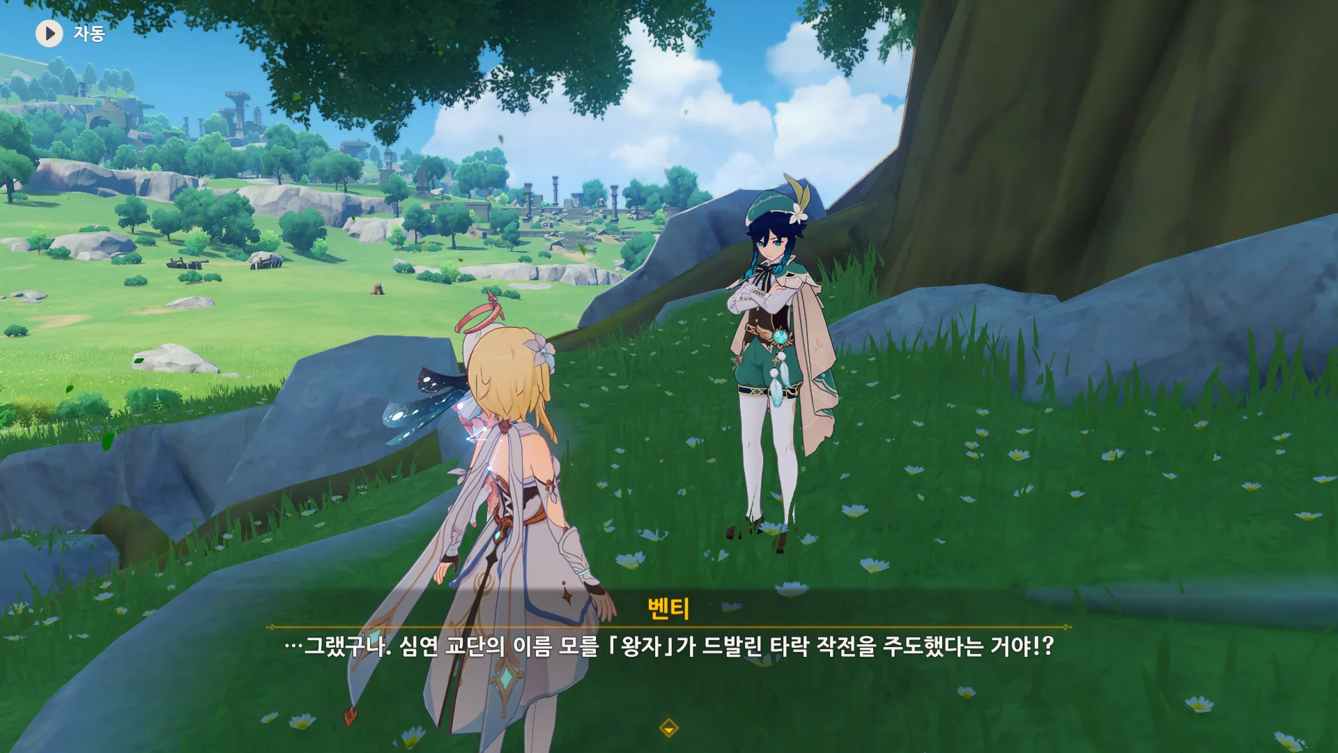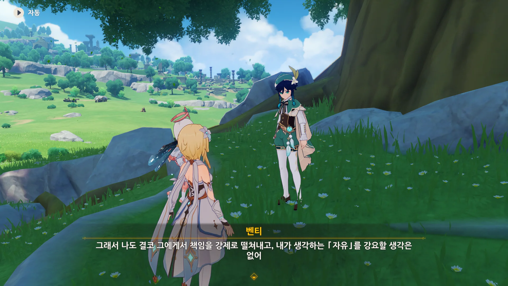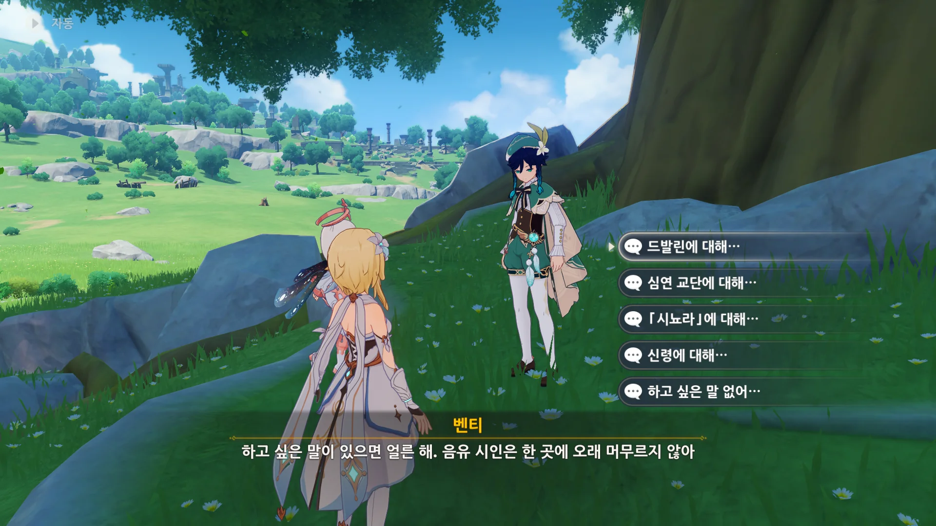 그걸 본 벤티가 한숨을 내쉬더니, 천공의 하프를 받아 들고, 다시 원래대로 돌려놓는다.