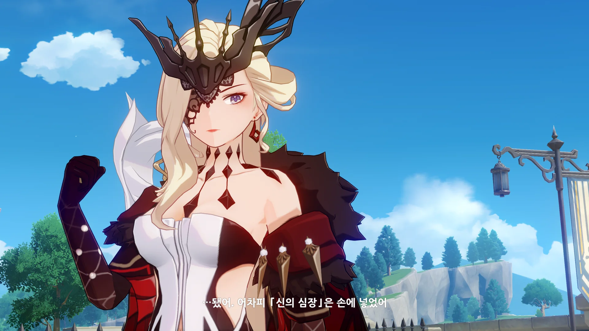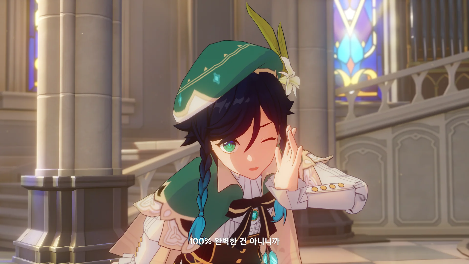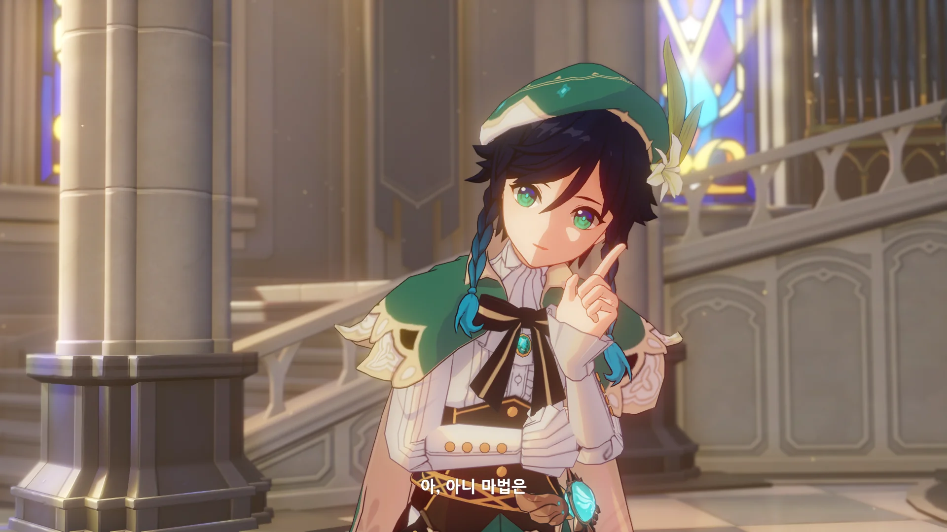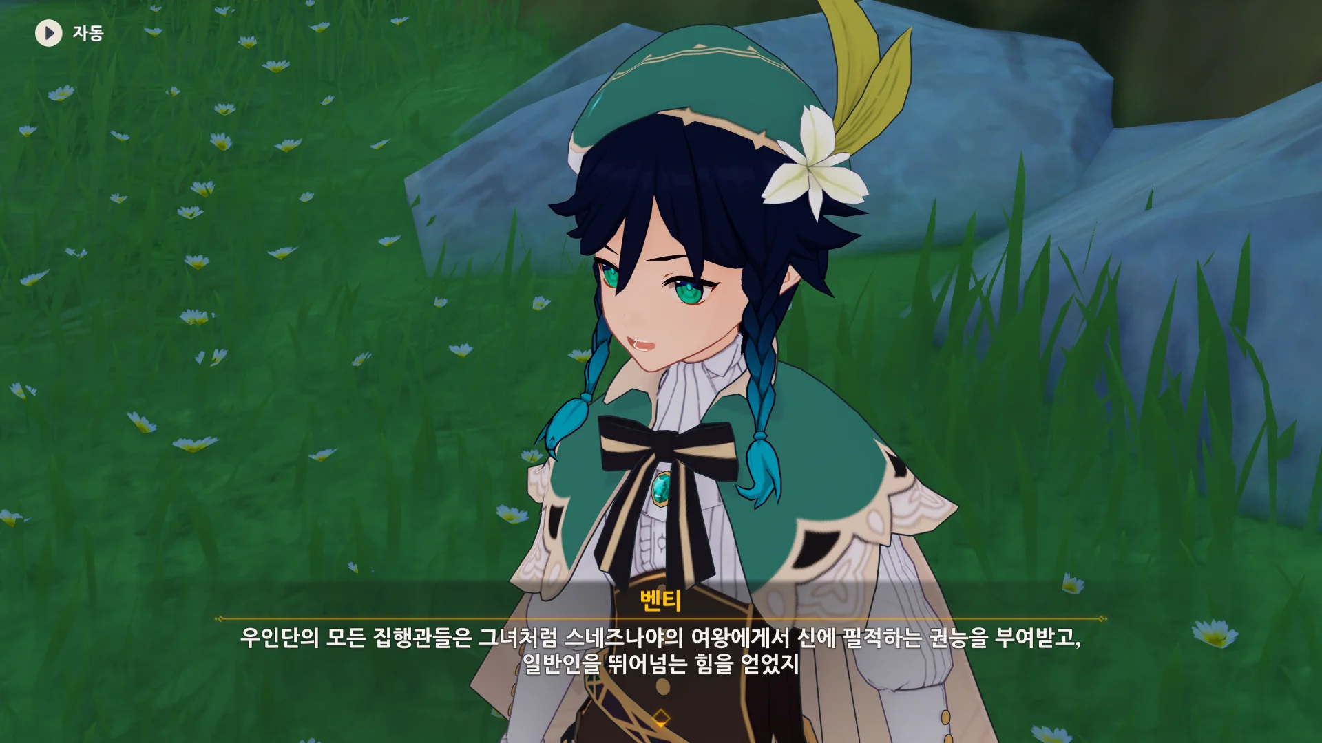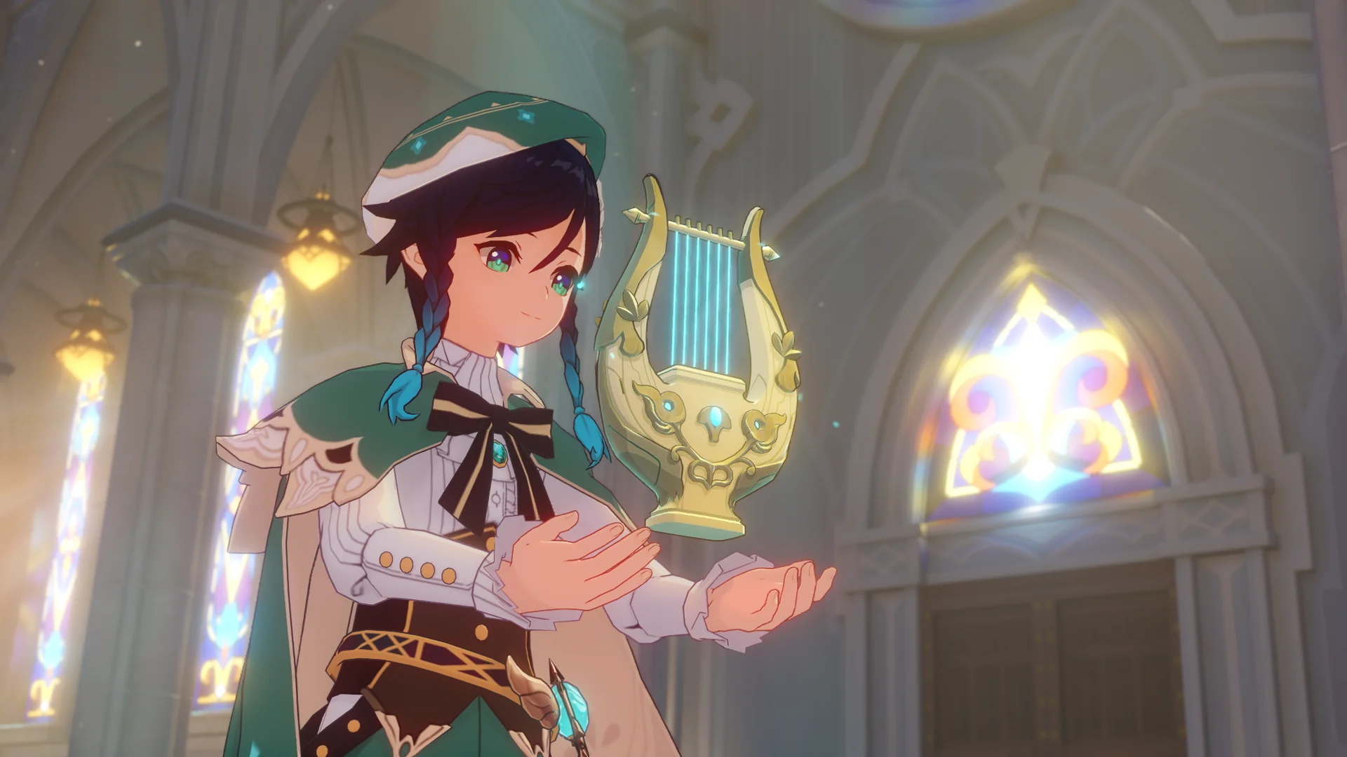 그걸 본 벤티가 한숨을 내쉬더니, 천공의 하프를 받아 들고, 다시 원래대로 돌려놓는다.