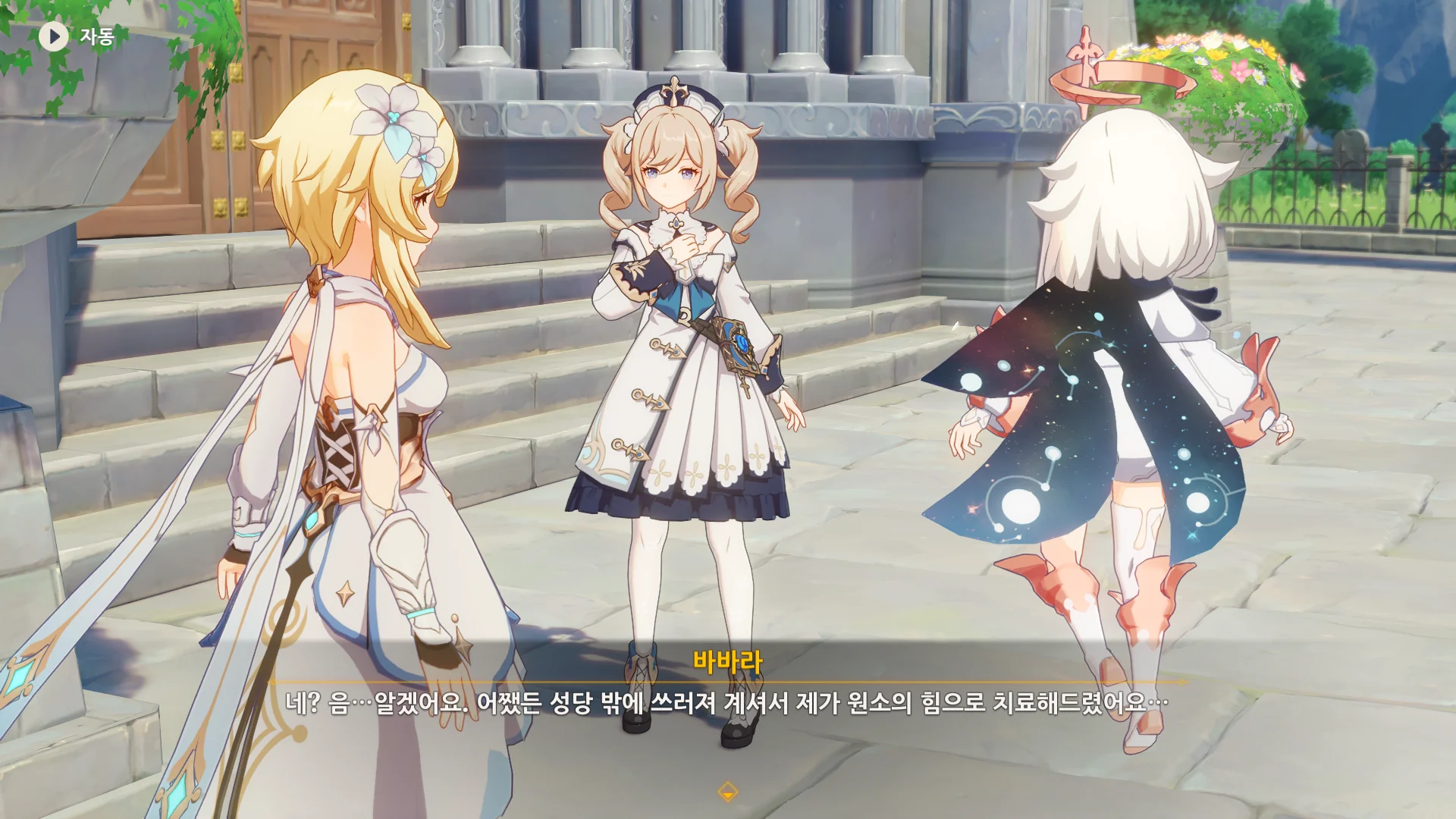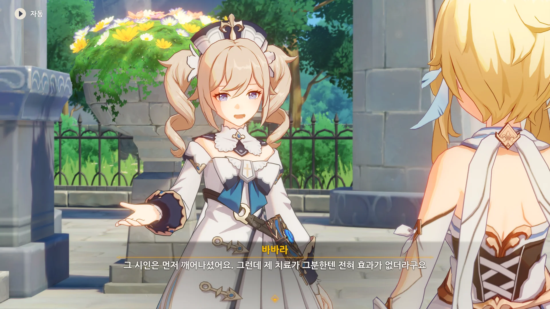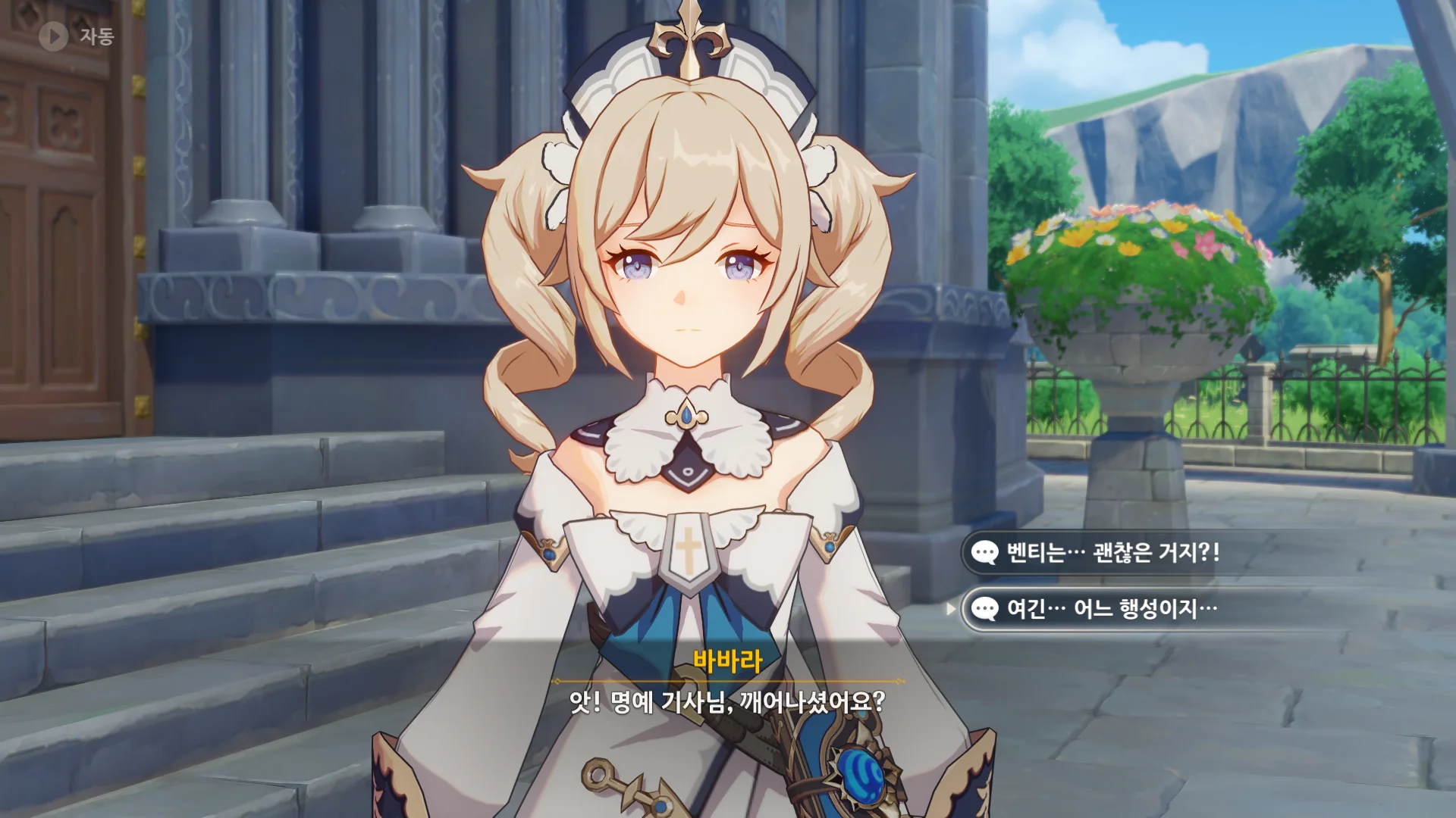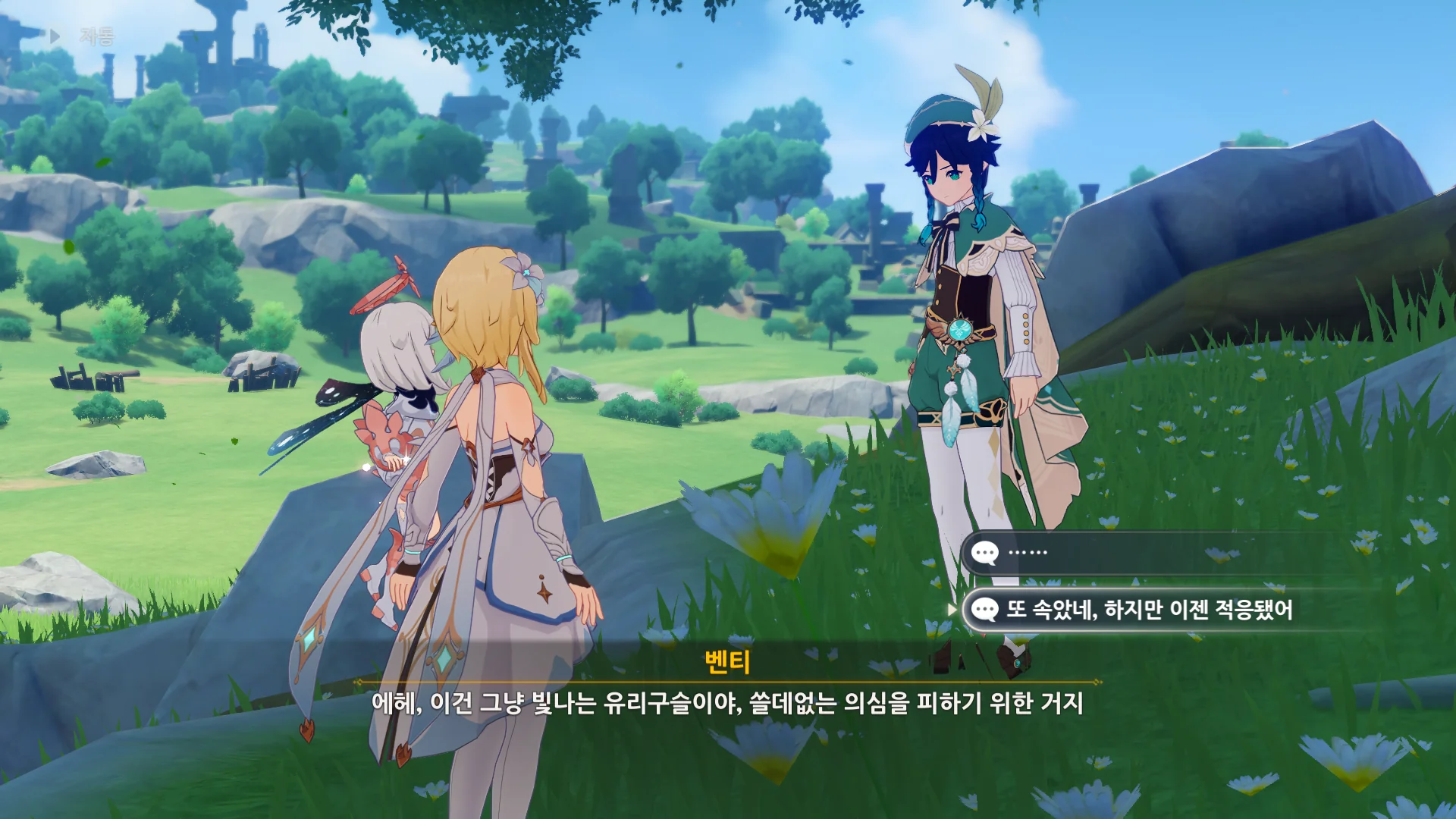 벤티가 바람의 신, 바르바토스이니 평범한 치료는 당연히 소용없을 테지. 그걸 안 진 역시 바바라에게 벤티를 그냥 보내라고 말했다.
