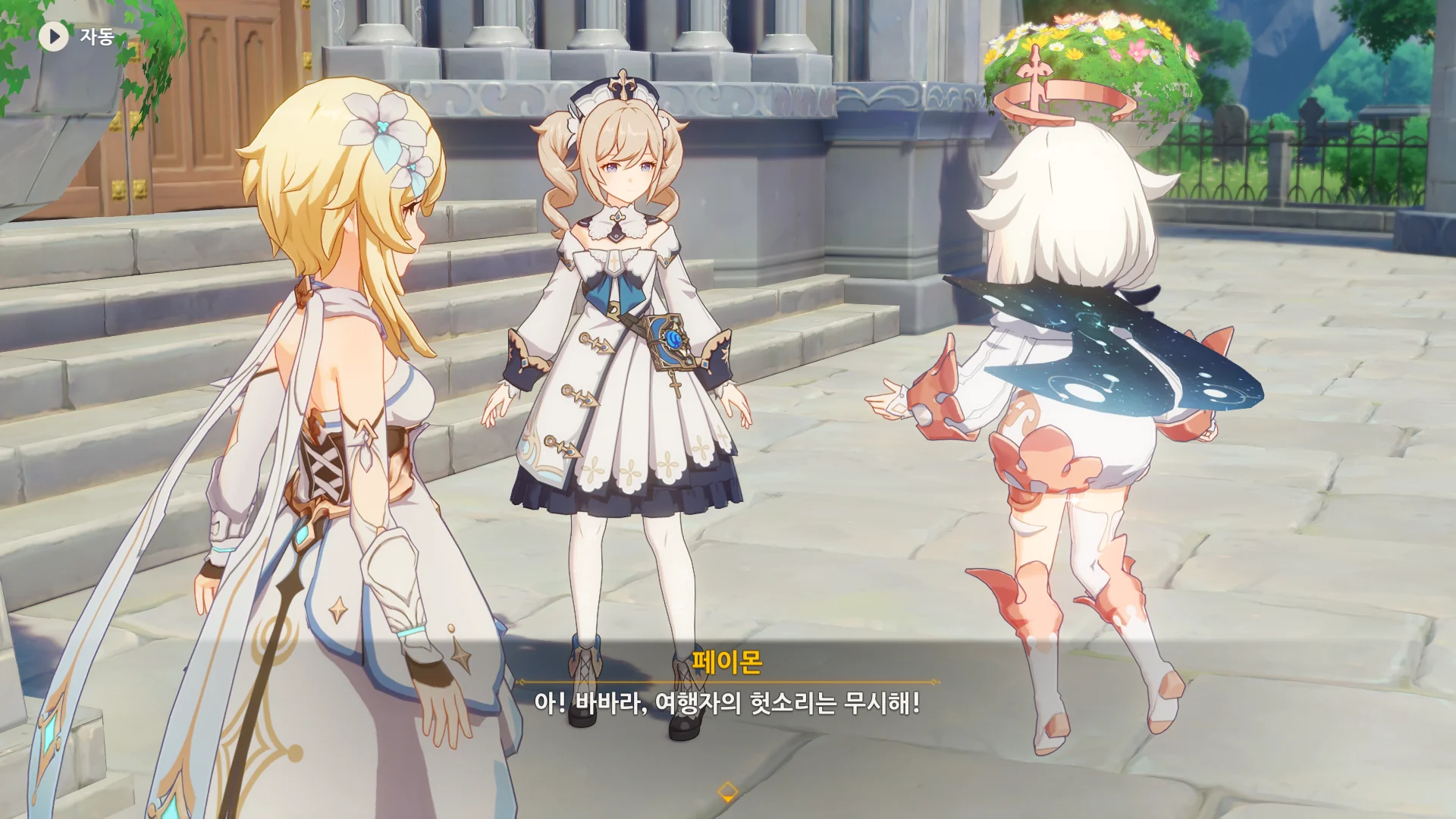 "여긴 어느 행성이지?"라고 개드립을 쳤더니 페이몬이 "여행자의 헛소리는 무시해!"라고 말한다.