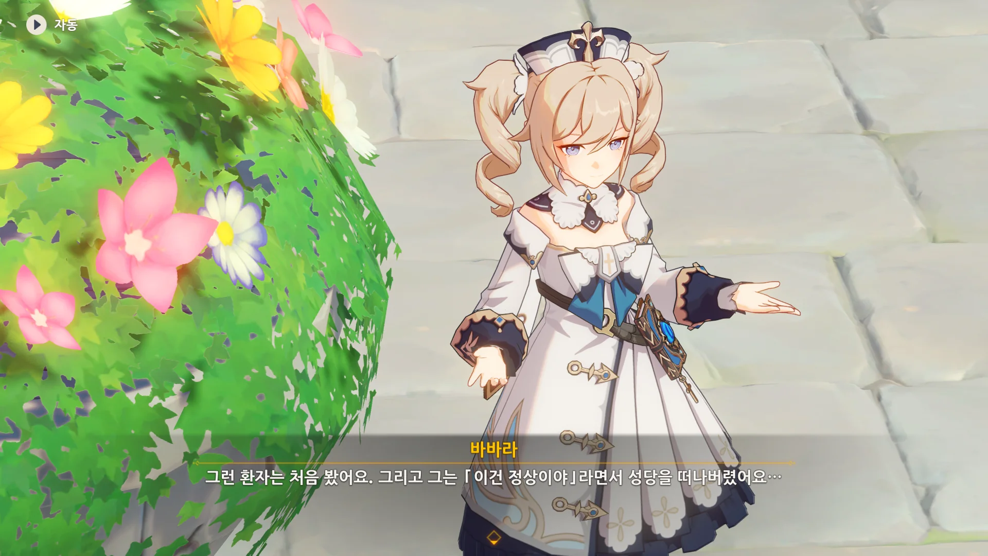 같이 쓰러져 있던 벤티에게는 바바라의 치료가 전혀 통하지 않았고, 벤티는 그게 정상이라며 「몬드 영웅의 상징」으로 향했다고 한다.