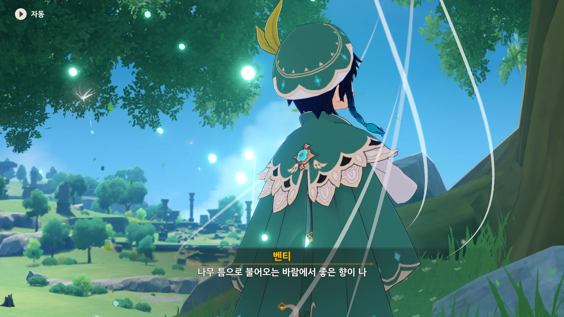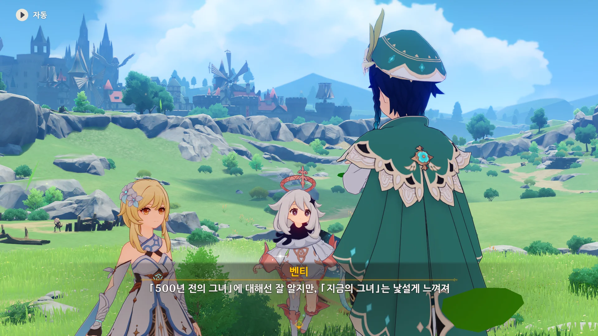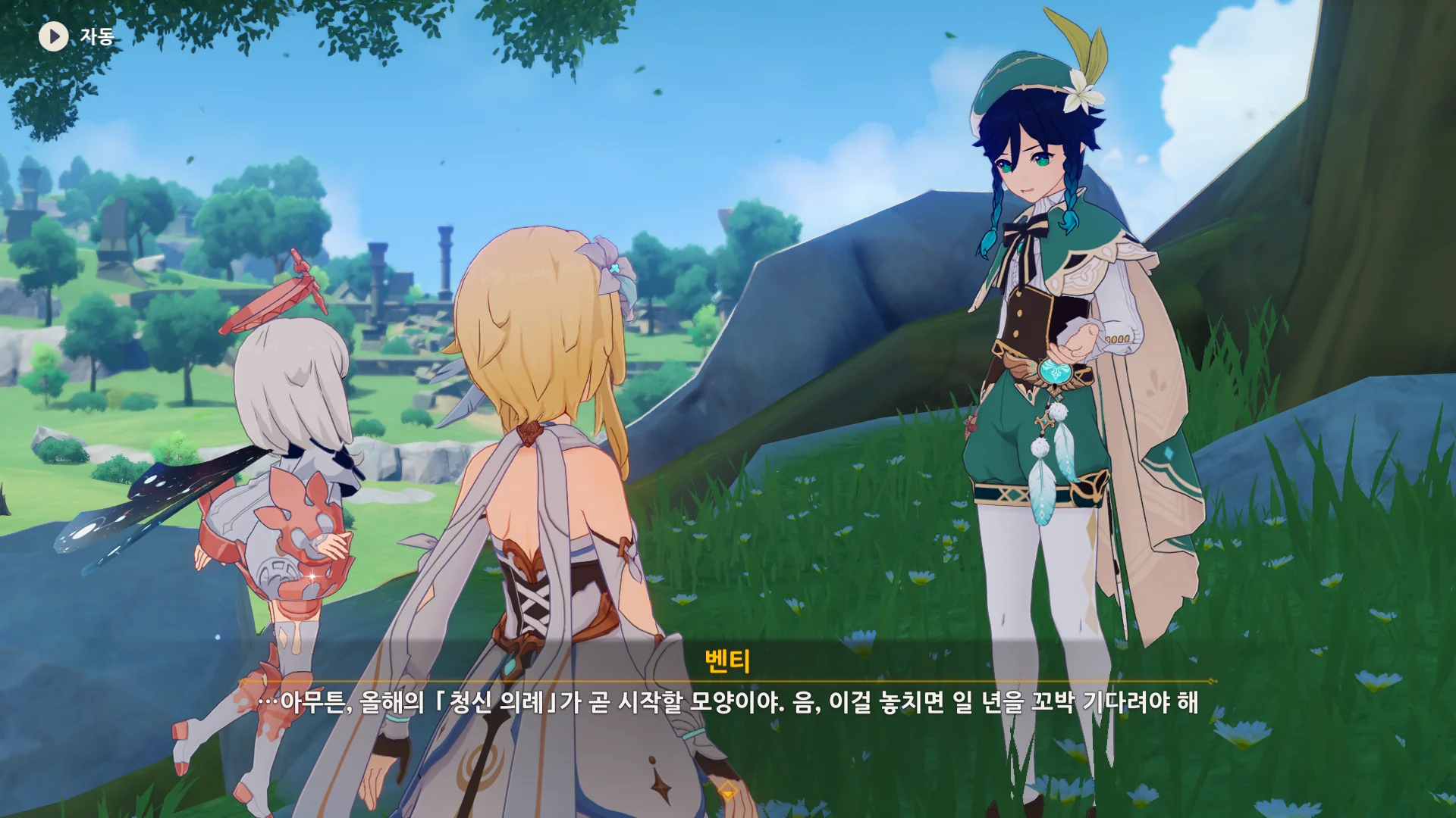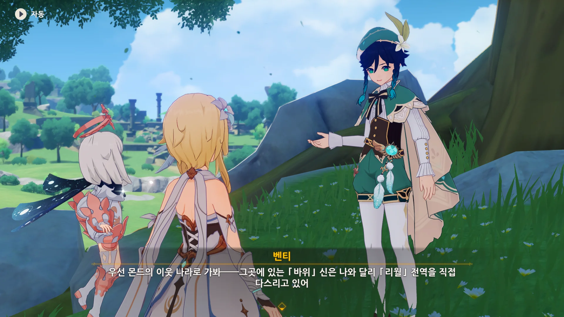 자연스럽게 몬드의 이웃 나라, 리월로 여행자를 인도하는 벤티.