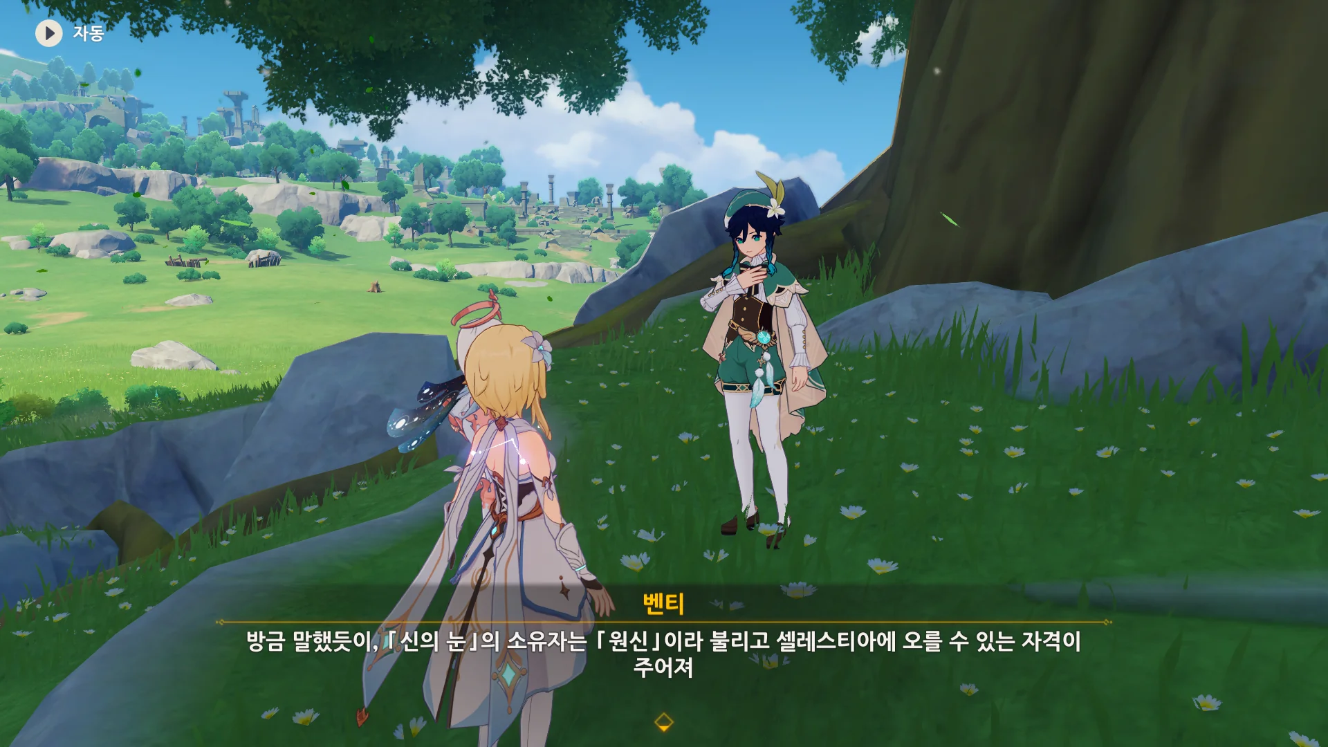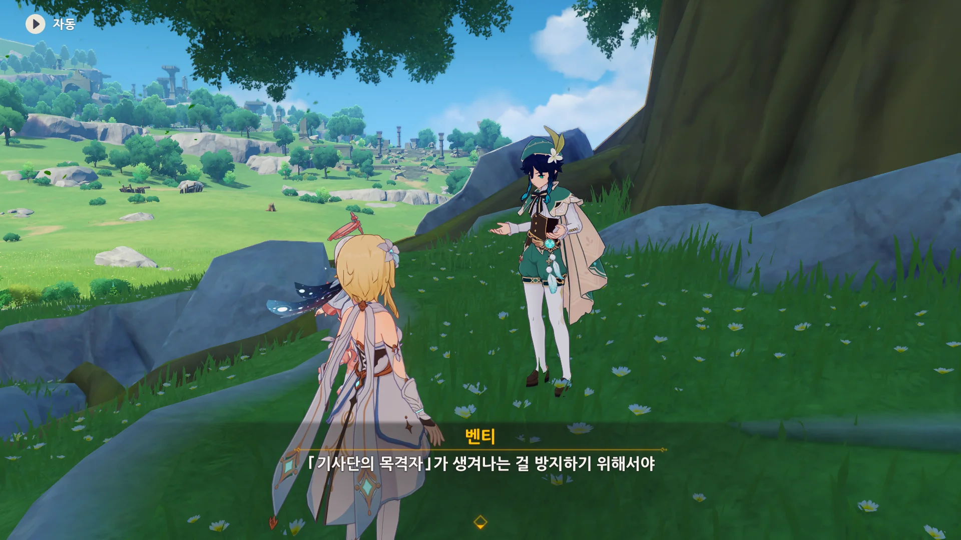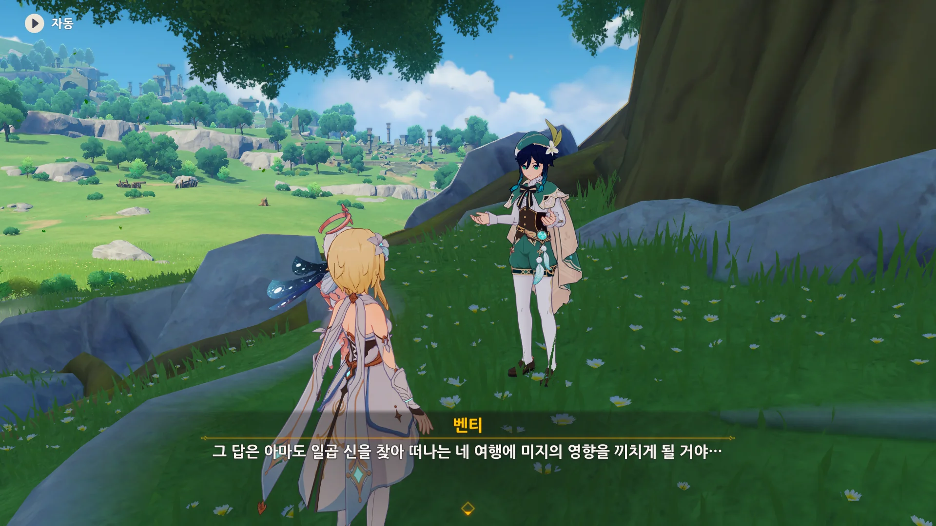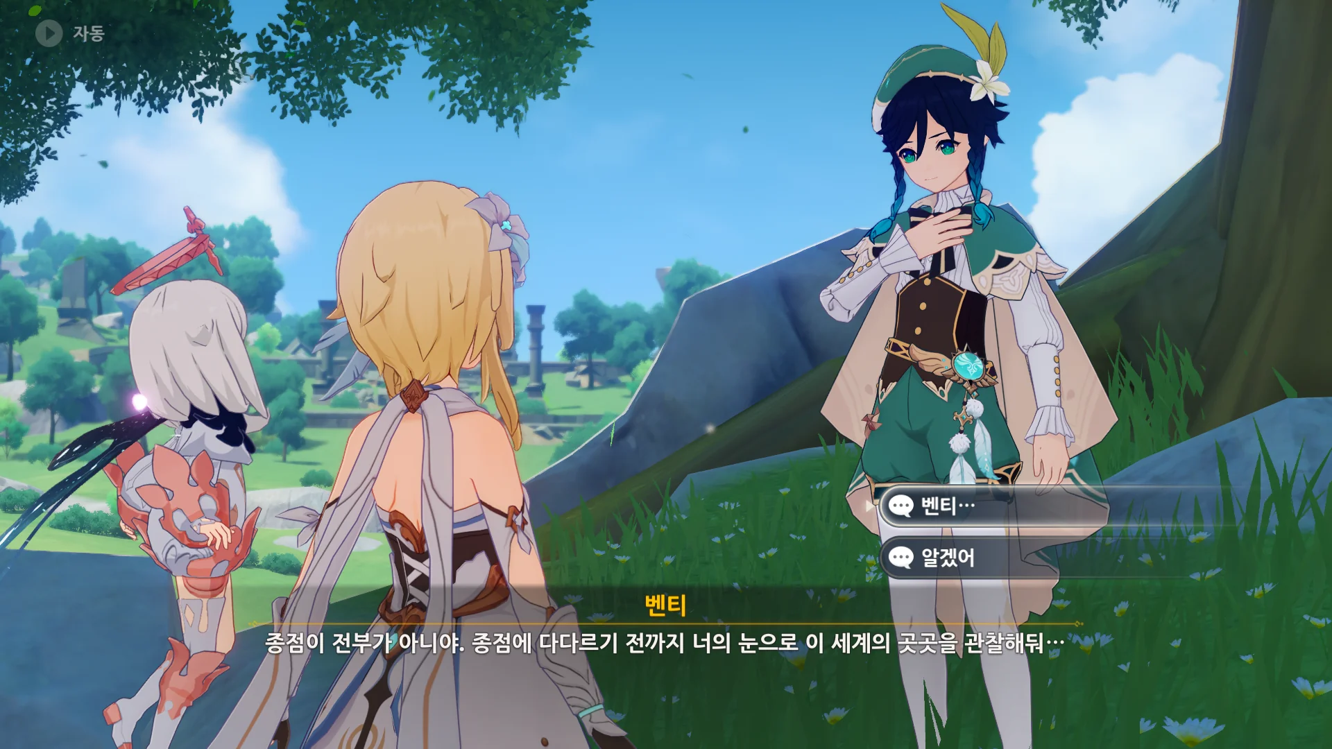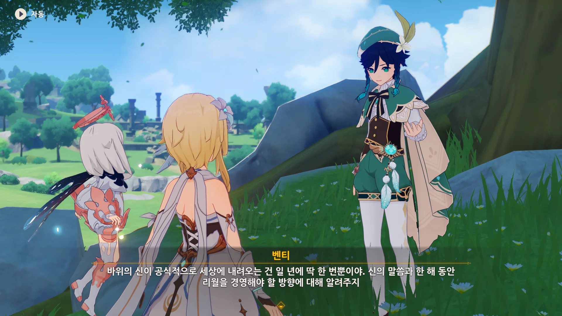 자연스럽게 몬드의 이웃 나라, 리월로 여행자를 인도하는 벤티.