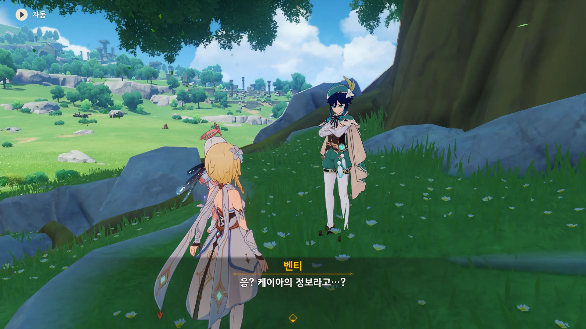 분명 벤티는 케이아에 대해서도 잘 알고 있겠지? 케이아가 말해준 정보라고 말하자, "케이아의 정보라고?"라고 되묻는다.