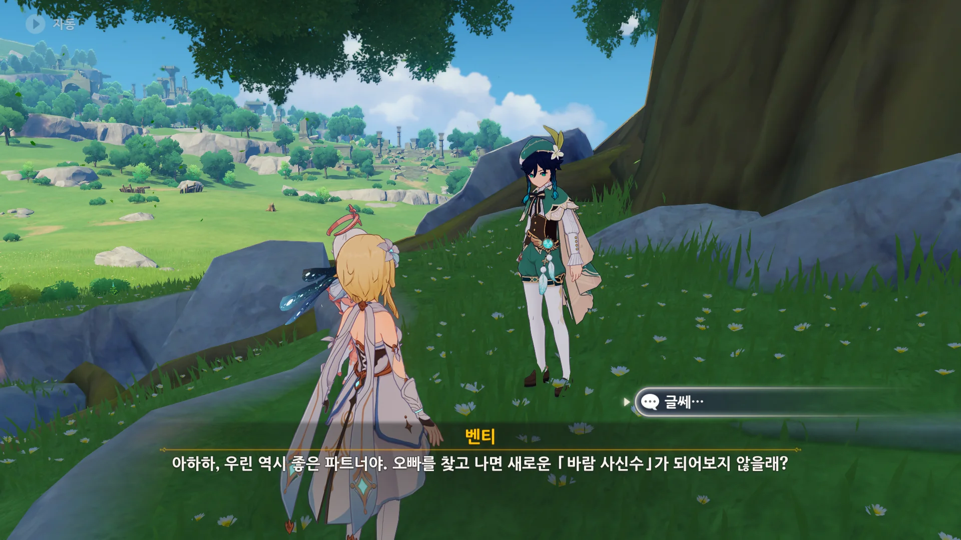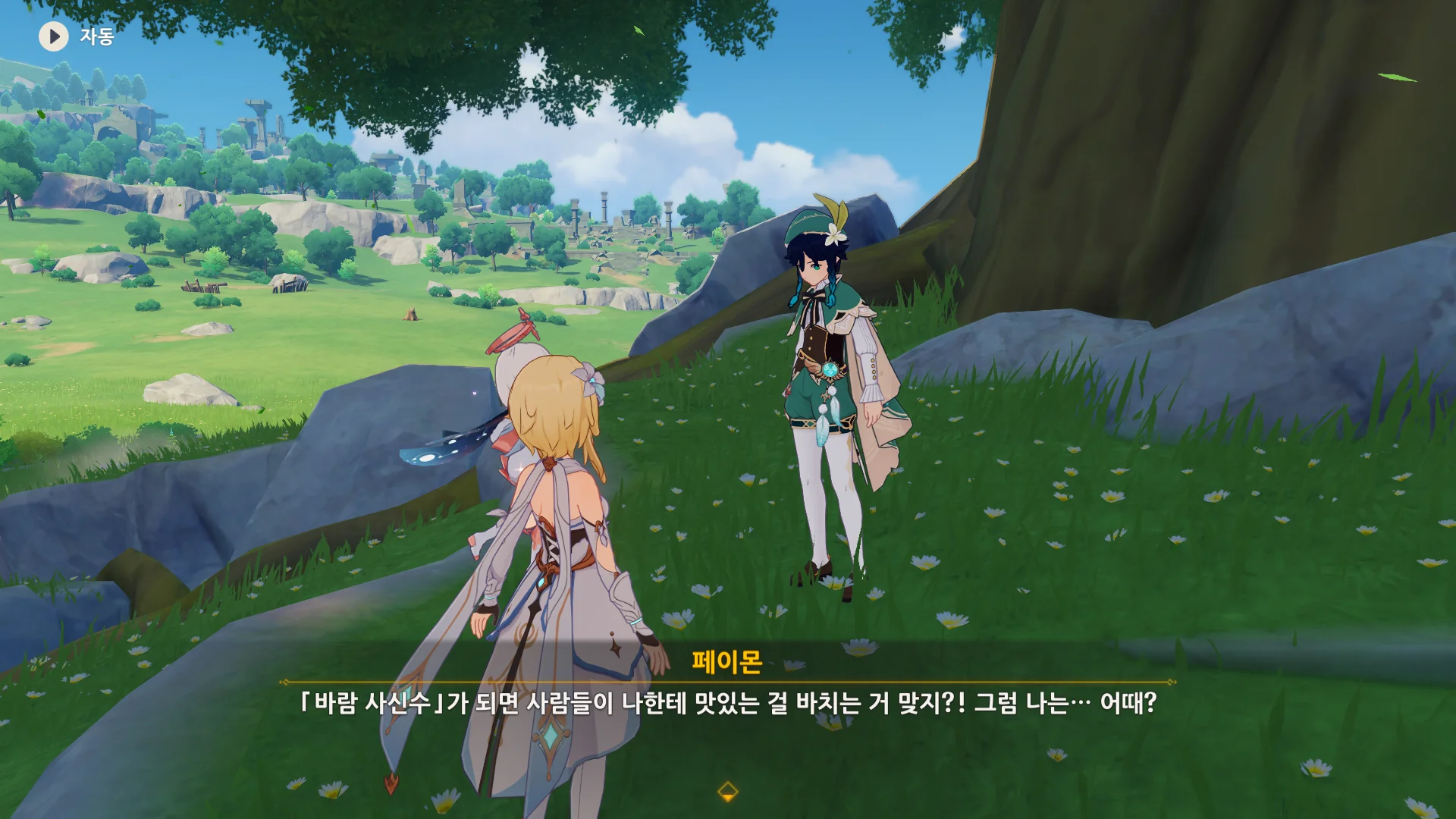 벤티를 쫓아가는 페이몬이 귀엽다.