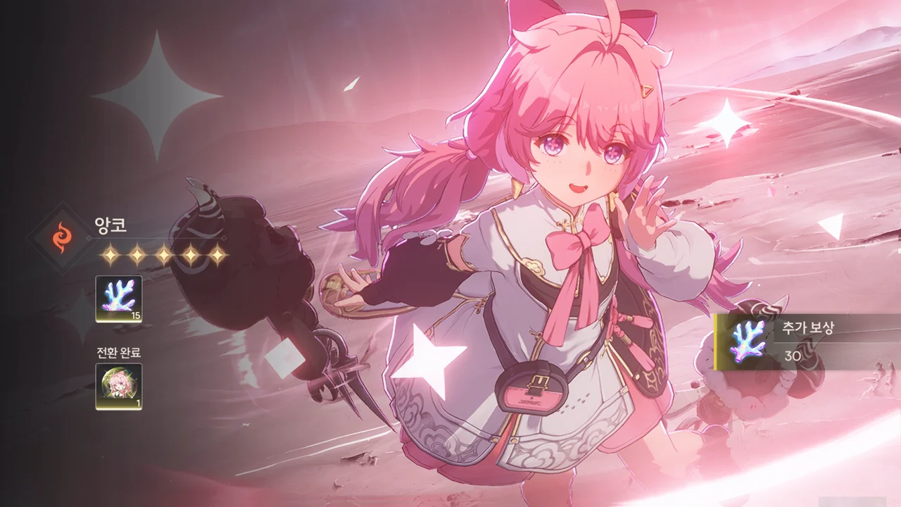 사실, 금희 픽업이 시작하자마자 갖고 있던 재화를 몽땅 긁어모아 금희 픽업에 도전했었다. 하지만 금희 대신 귀여운 앙코가 나오는 바람에, 명조를 시작하고 나서 처음으로 반천장을 보게 되었다. 5성이 나와서 잔뜩 기대하고 있는 내 앞에 나타나 해맑게 웃고 있는 앙코를 보니, 기분이 착잡해지더라.