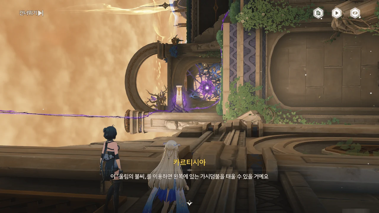 이후로는 여태껏 했던 일의 반복이다. 카르티시아의 정화를 통해 '울림의 불씨'를 막고 있는 가시넝쿨을 없앤 다음, 길을 막고 있는 가시덤불을 불태우고 거대한 조각상을 내리치면 된다.